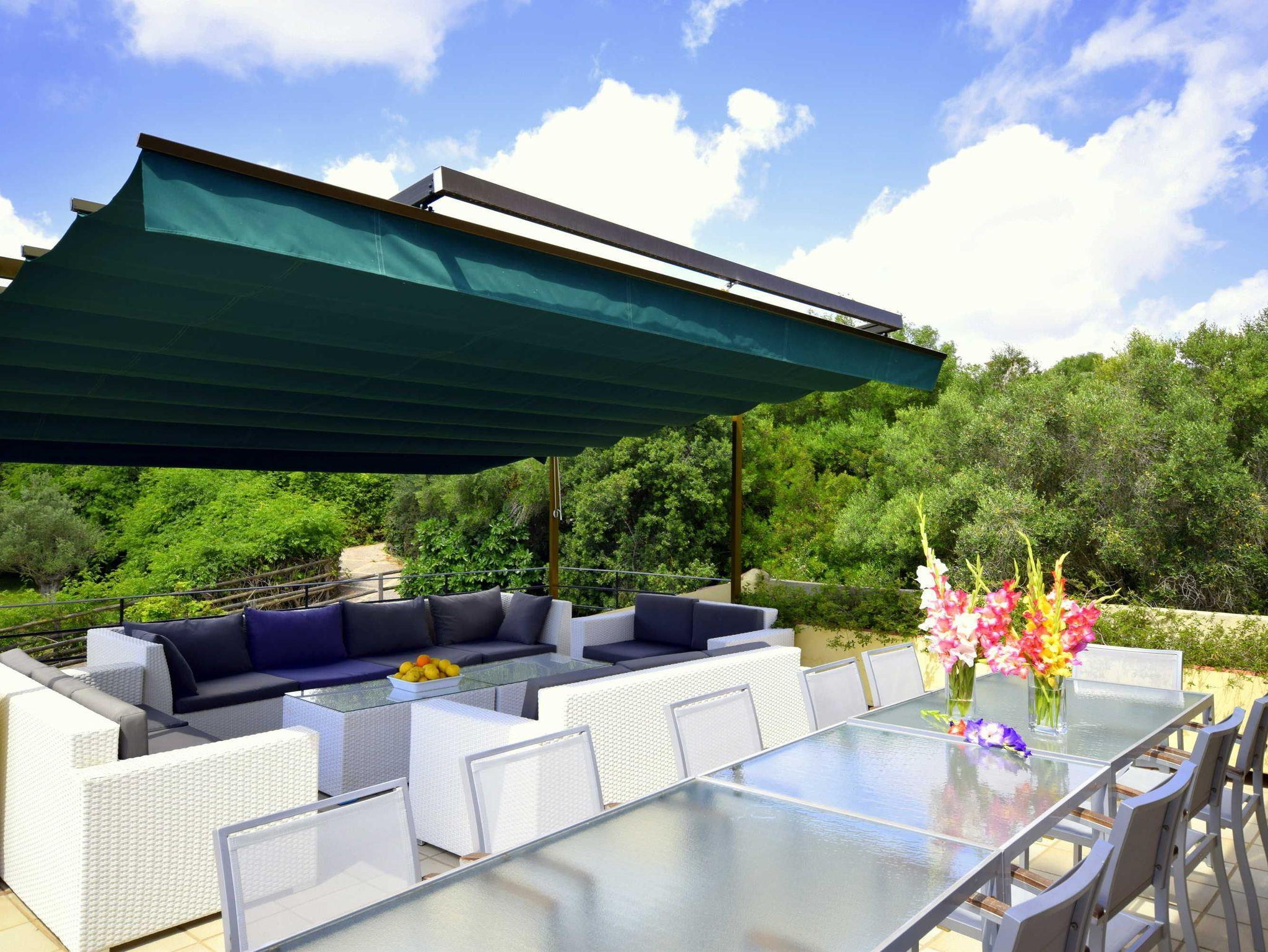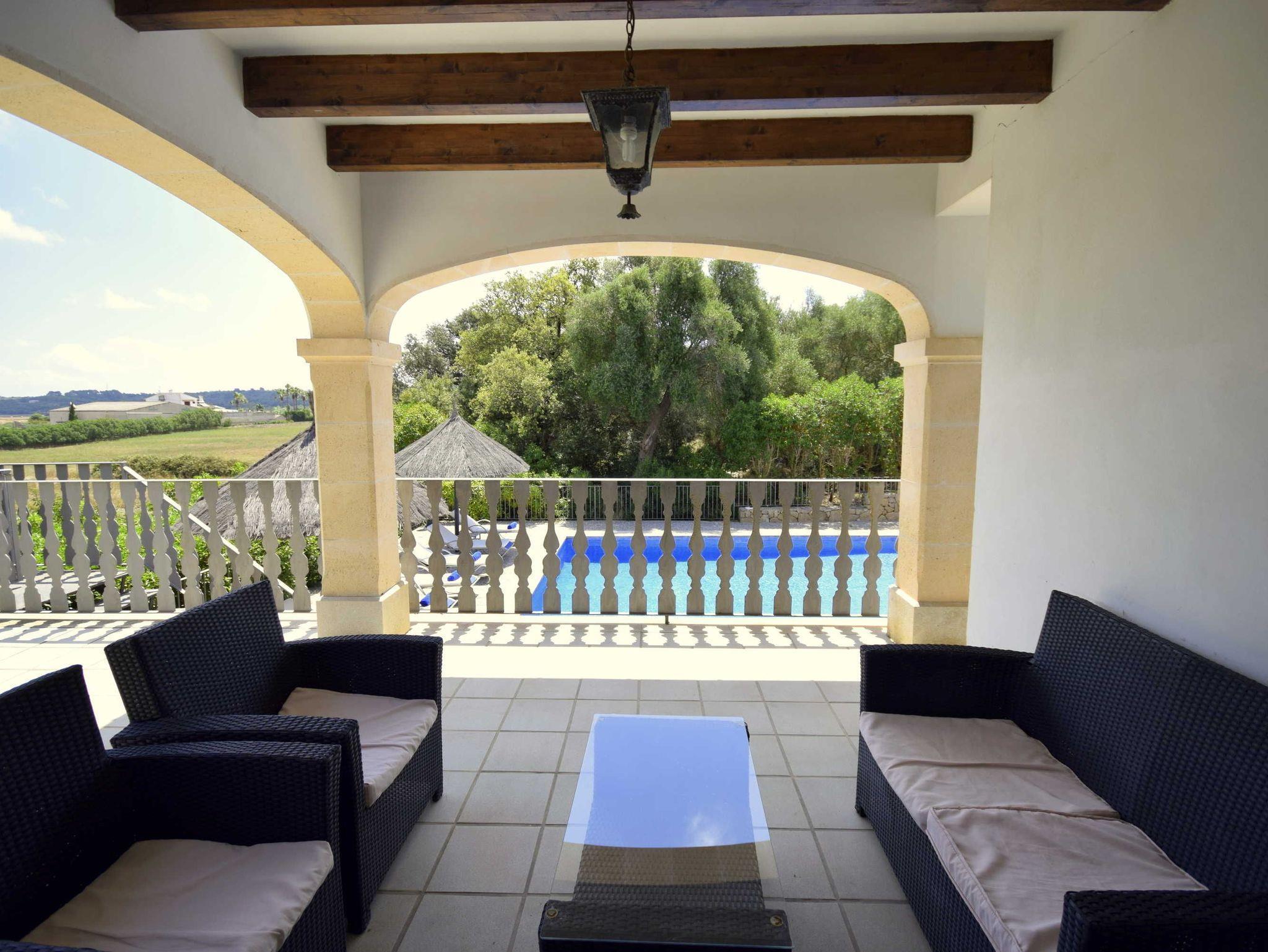 Das Haus hat eine offene Veranda rund ums Haus, perfekt um die Sonnestrahlen zu geniessen mit direktem Blick zum Pool.