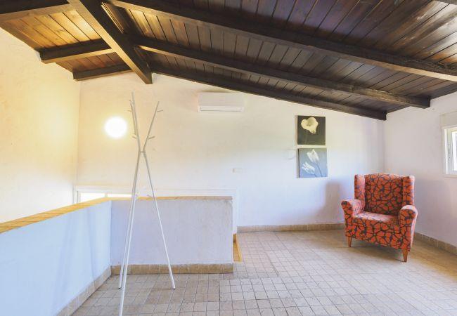 The American kitchen is equipped with a ceramic hob, fridge, microwave, freezer, coffee maker, toaster, kettle and juicer, offering everything necessary to cook comfortably, although it does not have an oven or dishwasher. Next to the kitchen, a rest area with two sofas creates a relaxed and welcoming atmosphere, where the washing machine is also located for greater convenience. The living room and the landing of the upper floor have air conditioning to maintain the ideal temperature during the stay.