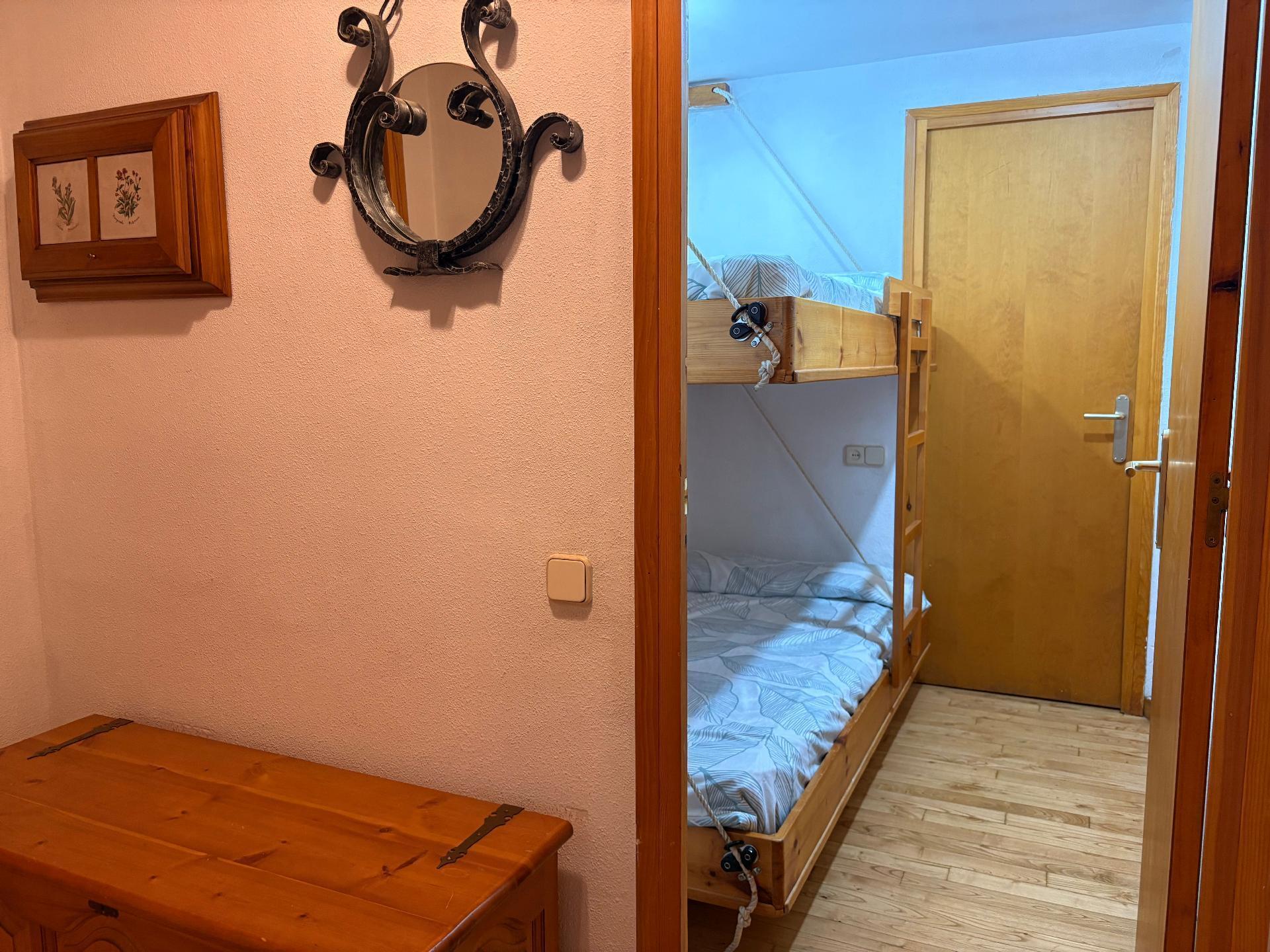 Inside, the flat combines functionality and comfort to ensure a pleasant stay. It consists of a double bedroom that promises a restful night's sleep. In addition, a folding bunk bed located in the hallway offers additional space to rest. The kitchen, the heart of this home, is fully equipped with ceramic hob and all the necessary utensils, complemented by a courtesy cleaning kit. The washing machine for exclusive use is another of the benefits that will facilitate your stay, allowing you to travel light and carefree.