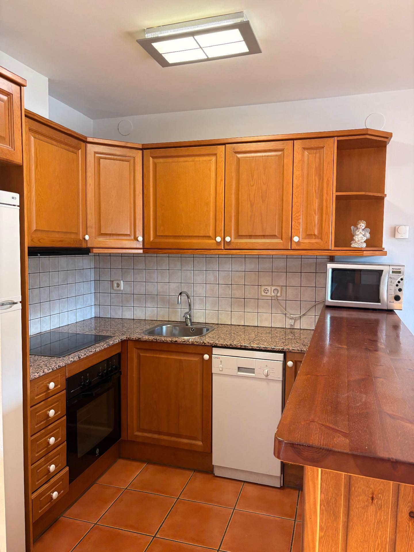 The interior of the flat is notable for its well laid out and well-equipped spaces to ensure a comfortable and pleasant stay. It consists of three cosy bedrooms, one of them with two single beds, and two double bedrooms, ensuring a refreshing rest after a day of adventures. In addition, the living room has a comfortable 1'50 sofa bed, ideal for accommodating two additional people. The kitchen comes fully equipped, including a ceramic hob and dishwasher, making it easy to prepare delicious meals as if you were at home. The washing machine for exclusive use adds even more convenience to your stay.