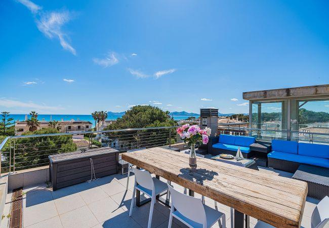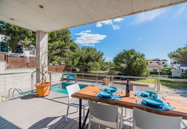 This modern spacious house is ideally situated 100 metres from the white sandy beach of Playa de Muro. Set in a quiet location with sea views this house has everything to offer its clients for a relaxing holiday.