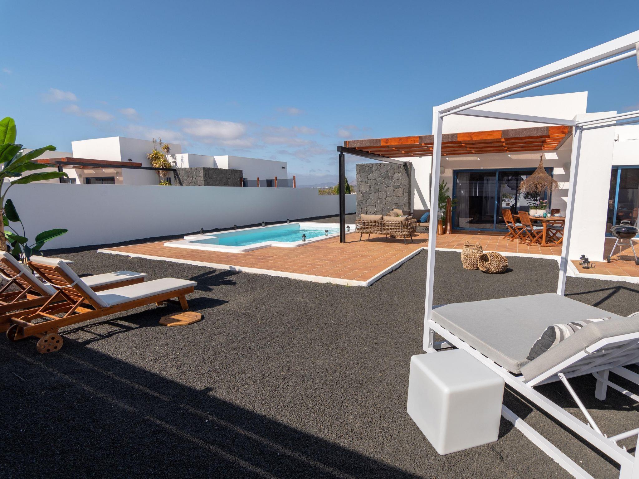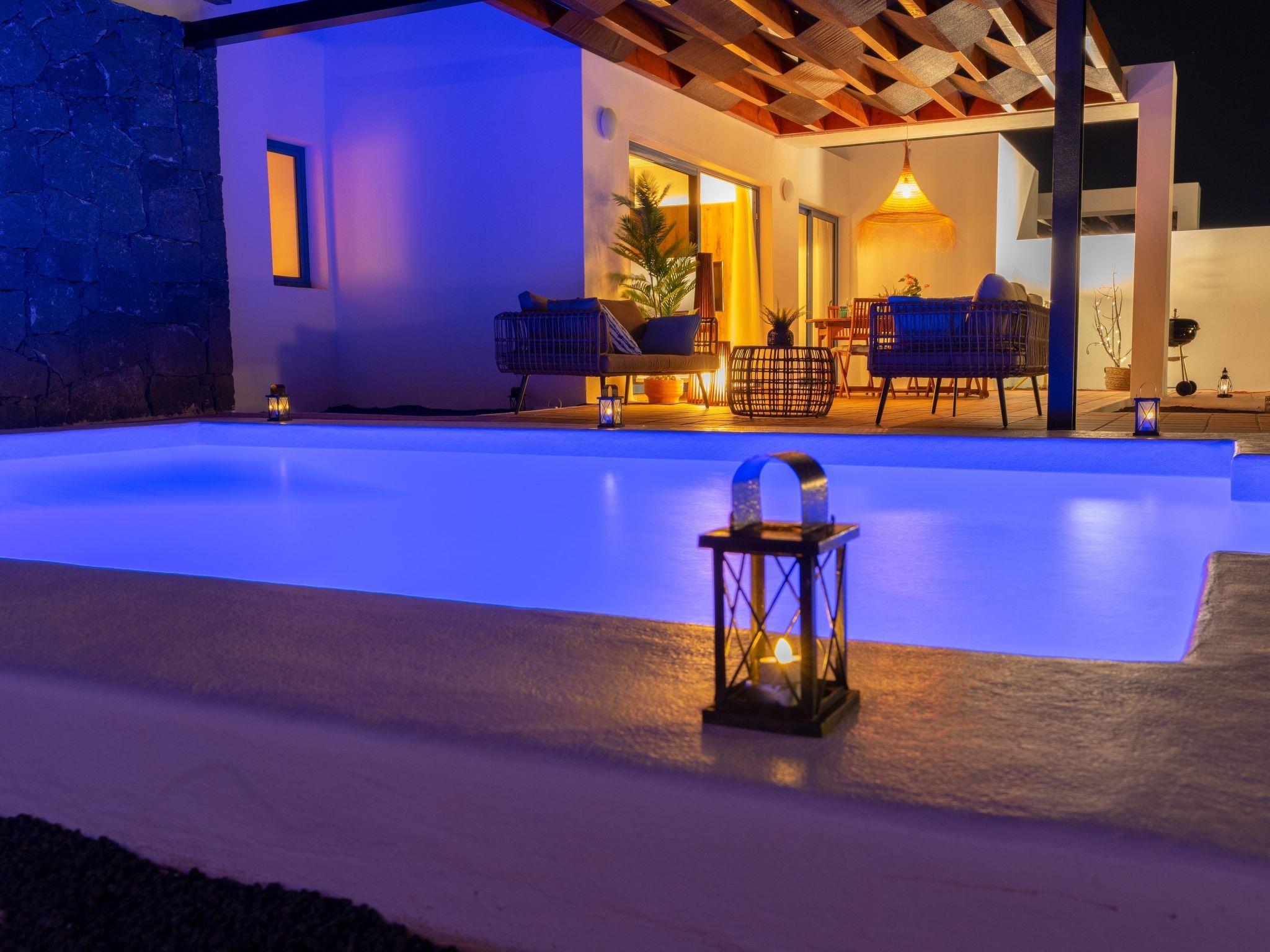 Bellavista 3 km from Playa Blanca: Beautiful terraced house "Bellavista". 2.5 km from the sea. Private: property 500 m2, swimming pool angular, heated (6 x 4 m, seasonal availability: 01.Jan. - 31.Dec.) with internal staircase. Barbecue. Stepped path (14 steps) to the house. Supermarket 500 m, restaurant 1.5 km, bus stop "El Pueblito" 550 m, sandy beach "Flaamingo" 2.5 km. Golf course (18 hole) 32 km, riding stable 1.5 km. Nearby attractions: Paque acúatico Agualava 1.8 km. Please note: car recommended.
