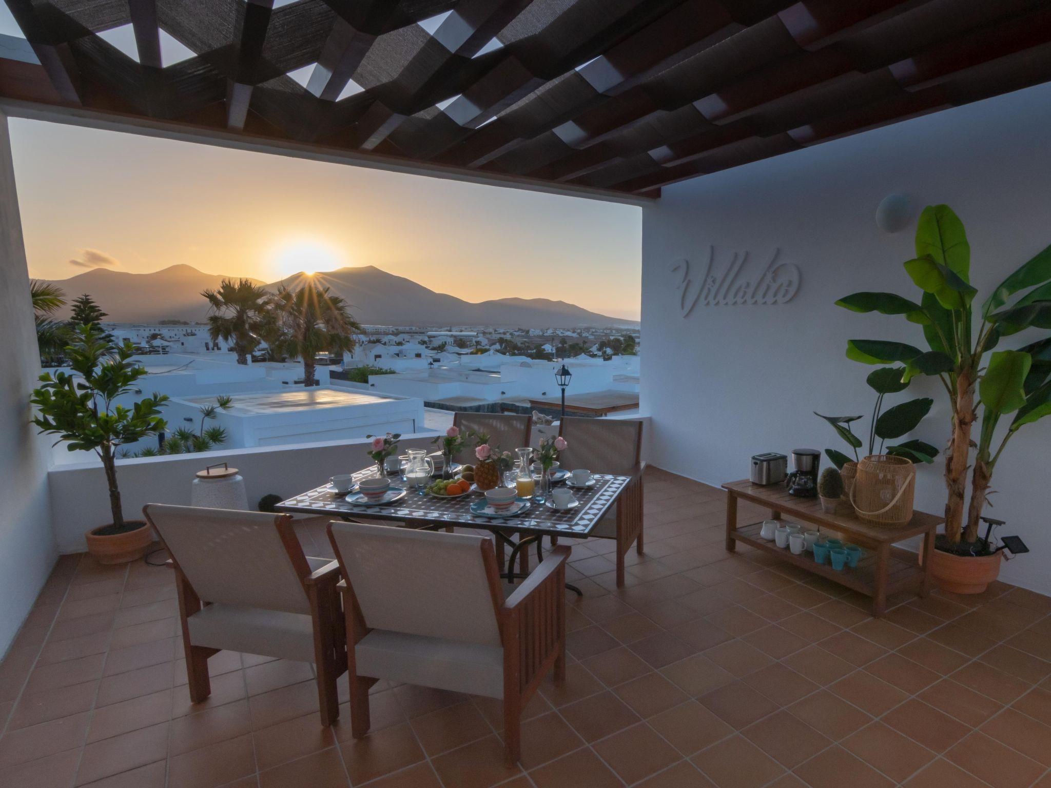 Bellavista 3 km from Playa Blanca: Beautiful terraced house "Bellavista". 2.5 km from the sea. Private: property 500 m2, swimming pool angular, heated (6 x 4 m, seasonal availability: 01.Jan. - 31.Dec.) with internal staircase. Barbecue. Stepped path (14 steps) to the house. Supermarket 500 m, restaurant 1.5 km, bus stop "El Pueblito" 550 m, sandy beach "Flaamingo" 2.5 km. Golf course (18 hole) 32 km, riding stable 1.5 km. Nearby attractions: Paque acúatico Agualava 1.8 km. Please note: car recommended.