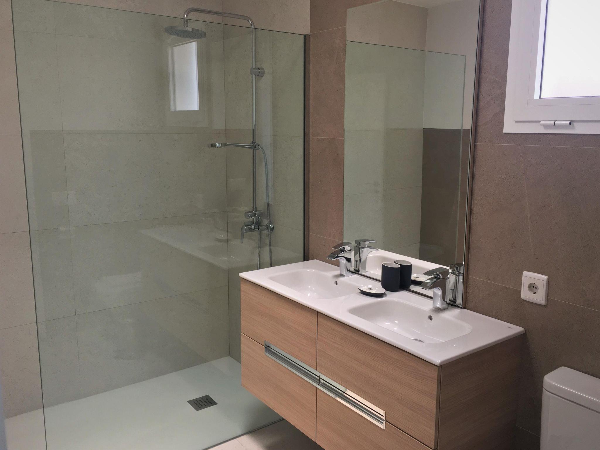 "Patricia", 4-room terraced house 80 m2. Practical and comfortable furnishings: living/dining room with satellite TV, digital TV, flat screen and air conditioning. Exit to the terrace, to the swimming pool. 1 room with 1 french bed (150 cm, length 190 cm), bath/WC and air conditioning. 2 rooms, each room with 2 beds (90 cm, length 190 cm). Open kitchen (oven, dishwasher, 4 ceramic glass hob hotplates, toaster, kettle, microwave, electric coffee machine). Shower/WC. Terrace. Terrace furniture, barbecue (portable), deck chairs (4). View of the sea, the swimming pool and the garden. Facilities: washing machine, safe, iron, children's high chair, baby cot for up to 2 year olds, hair dryer. Internet (WiFi, free). Parking. Please note: non-smoking house. VV-35-3-0002112 // Reg. Nr.: ESFCTU0000350190004217350000000000000VV-35-3-00021128