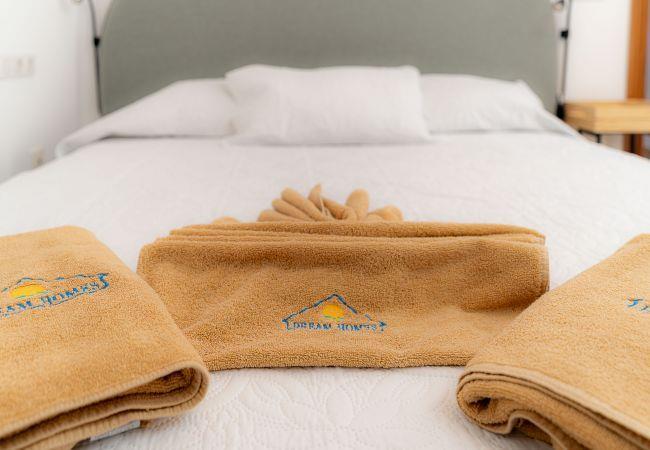 It has 3 bedrooms: 2 with double beds and 1 with bunk bed and extra bed for children, 2 bathrooms with bathtub with shower, a modern decoration and a living area with sofa, satellite TV (Languages: Spanish, English, German, French, Italian and many more), safe, and barbecue area. The kitchen is well equipped and includes an oven, microwave, fridge, electric glass ceramic hob, coffee maker, kettle, cooking utensils and toaster.