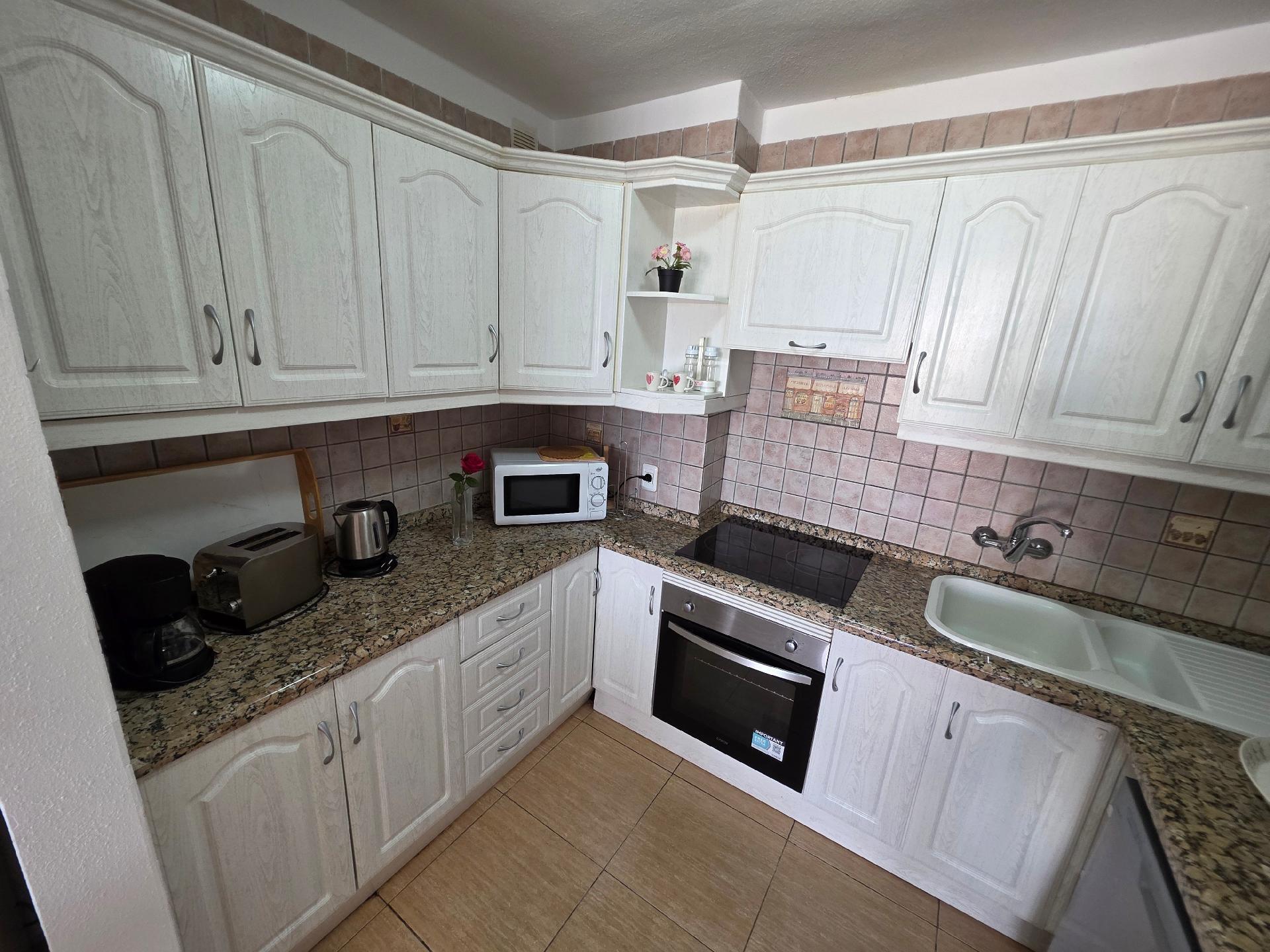 The apartment Jacaranda is located in the heart of Playa de las Americas in a very central location. All shops, supermarkets, restaurants and bars are within walking distance. The apartment is on the first floor and has a beautiful view to the sea. On a clear day you can see the island of La Gomera. Internet is via WLAN free of charge.The fully equipped kitchen has an electric stove, microwave, dishwasher, kettle, a refrigerator and freezer, toaster and coffee maker.
