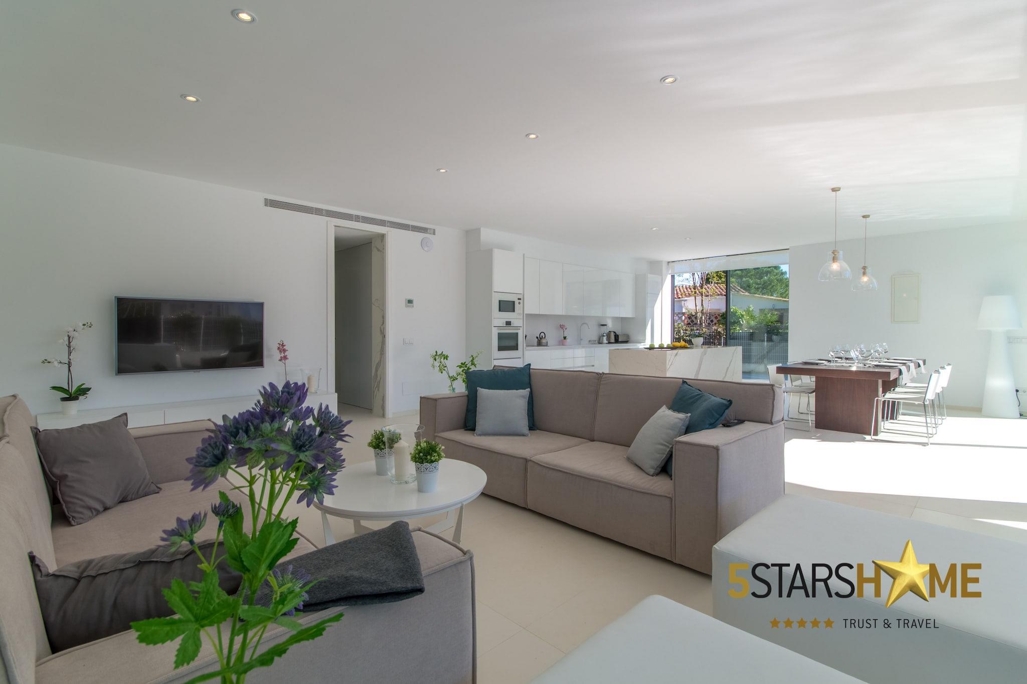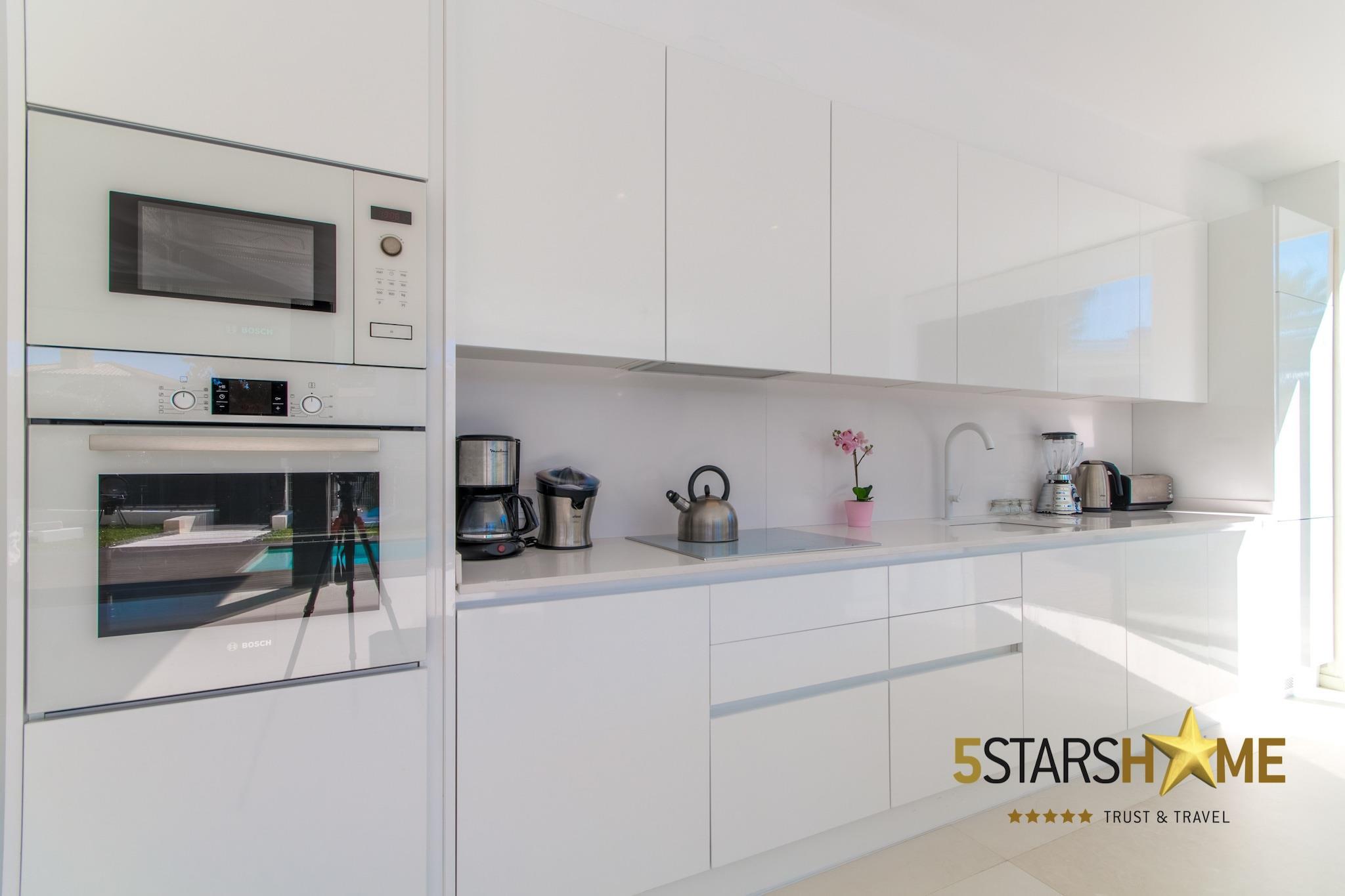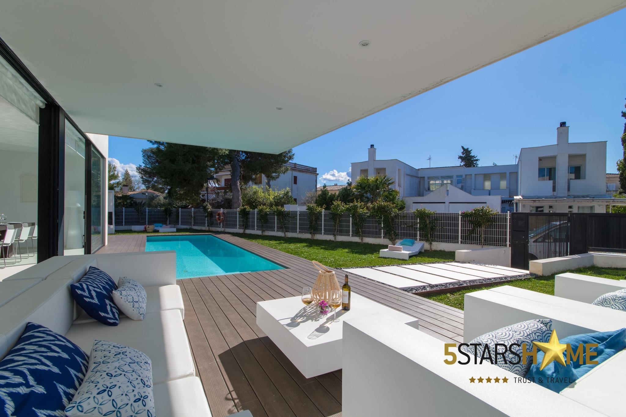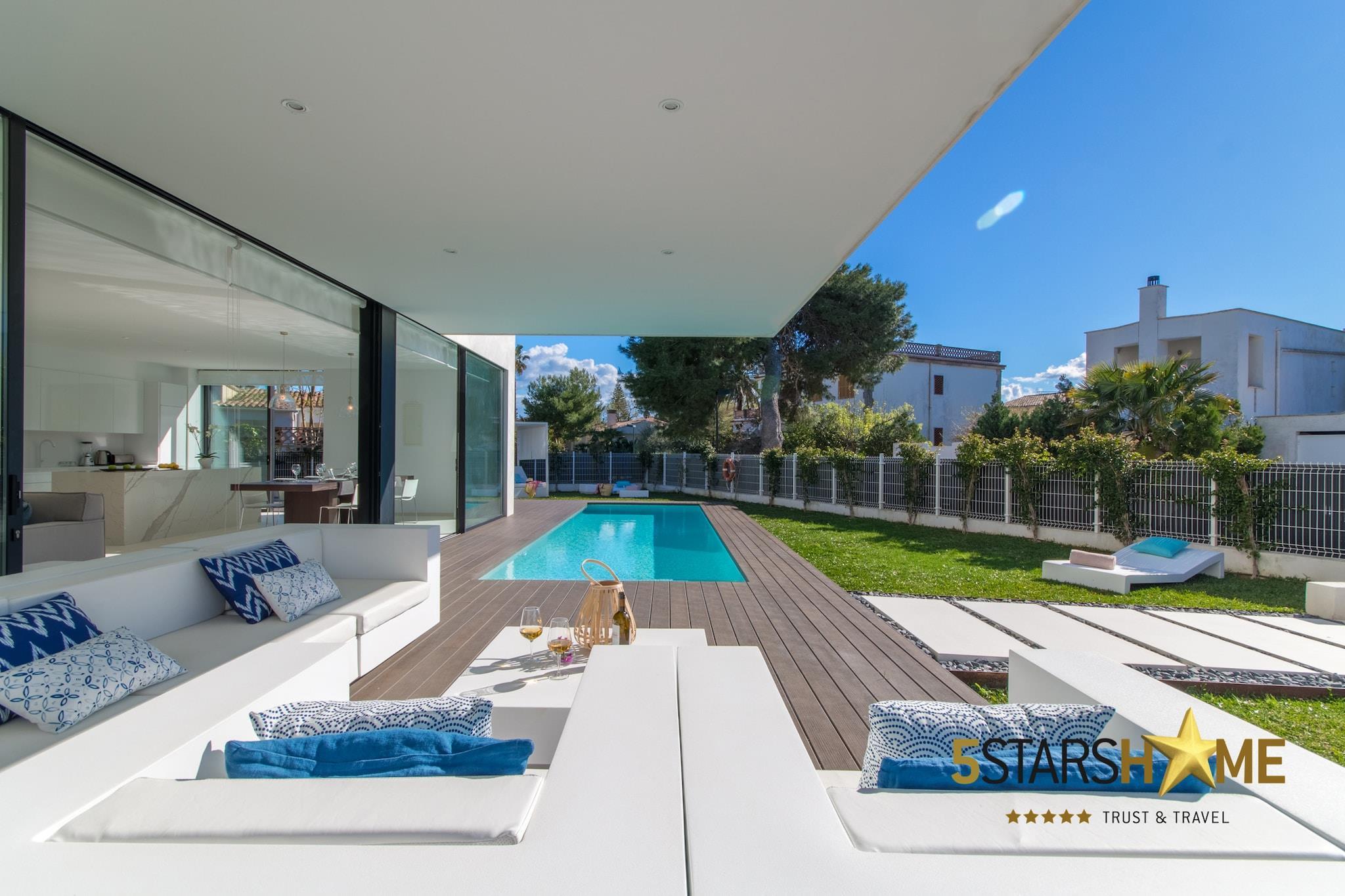 Denne moderne La Pau de Mar villa er det perfekte tilflugtssted for en ferie ved stranden, kun 180 meter fra det fantastiske Playa de Muro. Villaen kan rumme op til 6 voksne og babyer og har 3 rummelige soveværelser med dobbeltsenge og 2 badeværelser. Villaen tilbyder en række moderne bekvemmeligheder, herunder aircondition, varme og gratis WiFi, hvilket sikrer, at dit ophold er behageligt hele året rundt. Udendørsområdet er et højdepunkt med en lang pool, et afslappende afslapningsområde og en grill til afslappet udendørs spisning. Uanset om du foretrækker at slappe af i solen eller nyde den hyggelige terrasse, tilbyder denne villa det ideelle sted til afslapning. Playa de Muro er kendt for sine 5,5 kilometer med fint, gyldent sand og krystalklart turkisblåt vand, hvilket gør det til en af ??øens smukkeste strande. Det lave vand gør det til et fantastisk sted for familier, med masser af plads til at slappe af og lege. Kun en kort gåtur fra villaen finder du strandklubben "Royal Beach", der tilbyder en fantastisk stemning med levende musik, fantastisk havudsigt og lækker mad. Området er også fyldt med restauranter, barer, supermarkeder. Indvendigt har villaen et åbent design med en moderne og minimalistisk stil. Stueetagen har en rummelig opholdsstue med en komfortabel sofa og satellit-tv, en lys spiseplads og et fuldt udstyret køkken med en praktisk køkkenø. Ovenpå er de 3 dobbeltværelser designet til maksimal komfort og udstyret med tv, aircondition og indbyggede skabe. Lejelicensnummeret er ETV/7416
