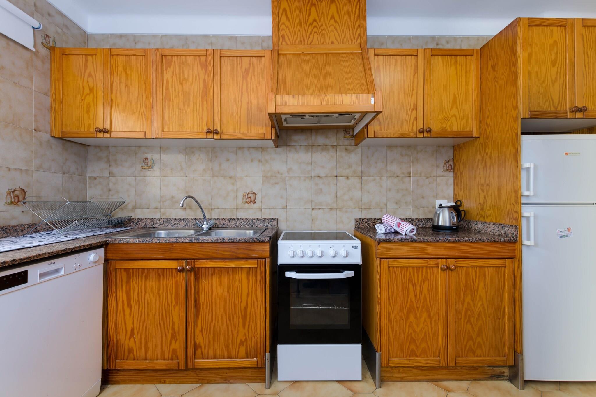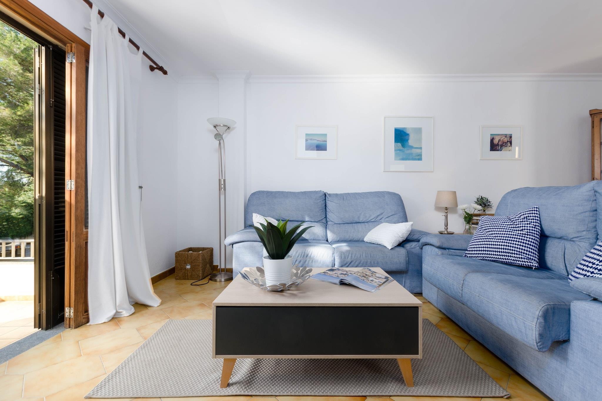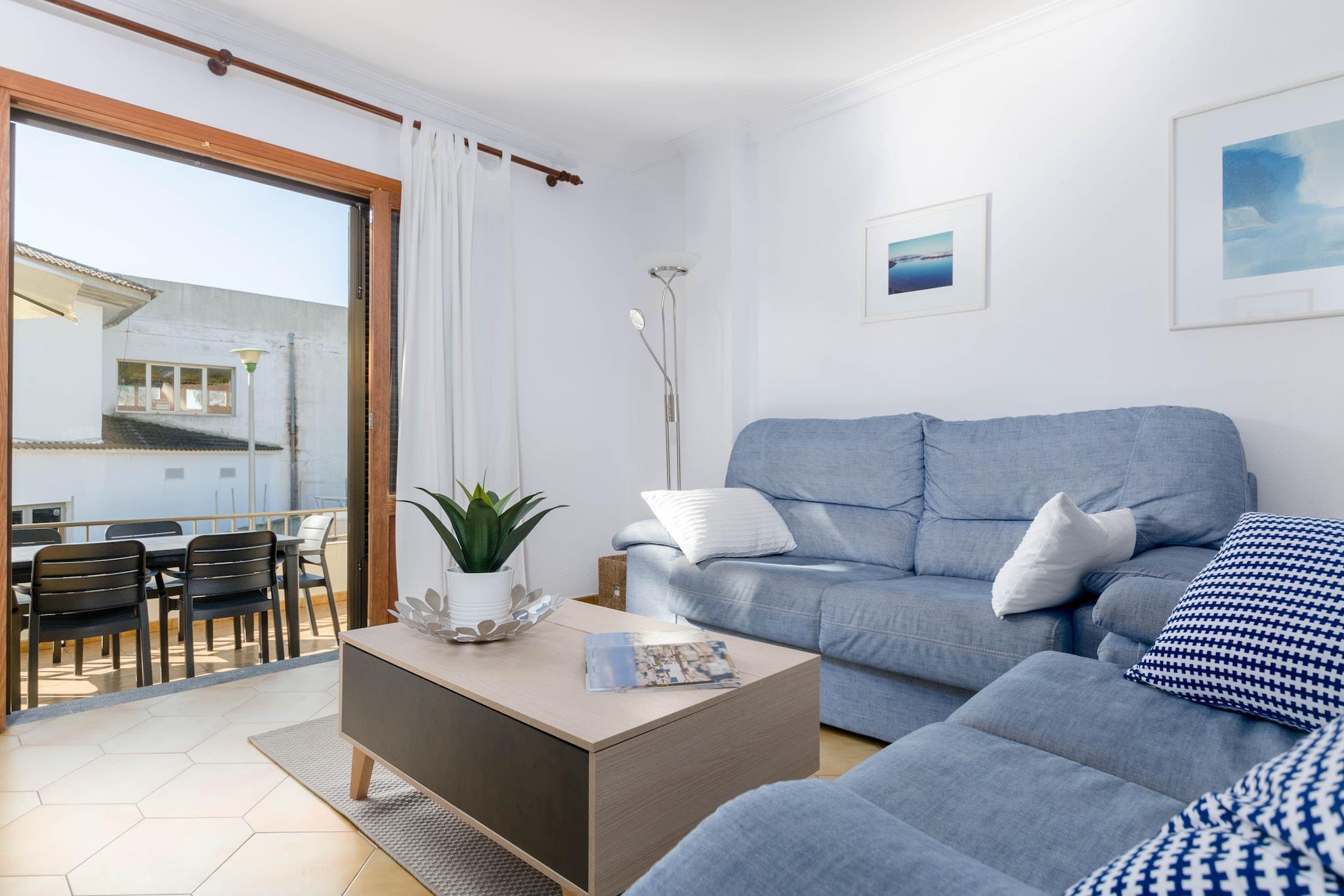 Alfresco og liggestole Træd ud på den private terrasse, hvor dagen begynder med frisk luft og slutter med et glas vin. Det udendørs rum har en kunstig græsplæne og to liggestole, ideel til at læse, slappe af eller nyde den mallorcanske sol. Blot en kort gåtur fra stranden kan du nyde nem adgang til Playa de Muros rolige vand, hvilket gør spontane svømmeture eller aftenture ubesværet bekvemme. Terrassen fungerer også som et perfekt sted for alfresco måltider efter en dag i solen. Luftige opholdsrum Indvendigt blander stue-spisestuen levende farver og komfortable møbler, hvilket skaber et fredeligt tilflugtssted. Udstyret med aircondition og satellit-tv er det det ideelle sted at slappe af, dele måltider eller nyde stille øjeblikke. Det traditionelle køkken, komplet med keramisk kogeplade og alle nødvendige apparater, lader dig tilberede hjemmelavede retter med lethed. Tre soveværelser sikrer afslappende nætter: en dobbeltseng med AC og to tvillinger med ventilatorer, to med skabe. Huset indeholder en barneseng, høj stol og to badeværelser - det ene med badekar, det andet med bruser. Førsteklasses kystbeliggenhed Beliggende kun 230 meter fra Playa de Muro, kombinerer dette rækkehus roen i et boligområde med bekvemmeligheden ved nærliggende tjenester. Caféer, restauranter, supermarkeder og butikker er alle inden for rækkevidde, mens golfentusiaster kan nå Alcanada-banen på 10 km. Puerto de Alcúdia ligger kun 8,4 km væk og byder på yderligere spise- og kulturelle oplevelser.