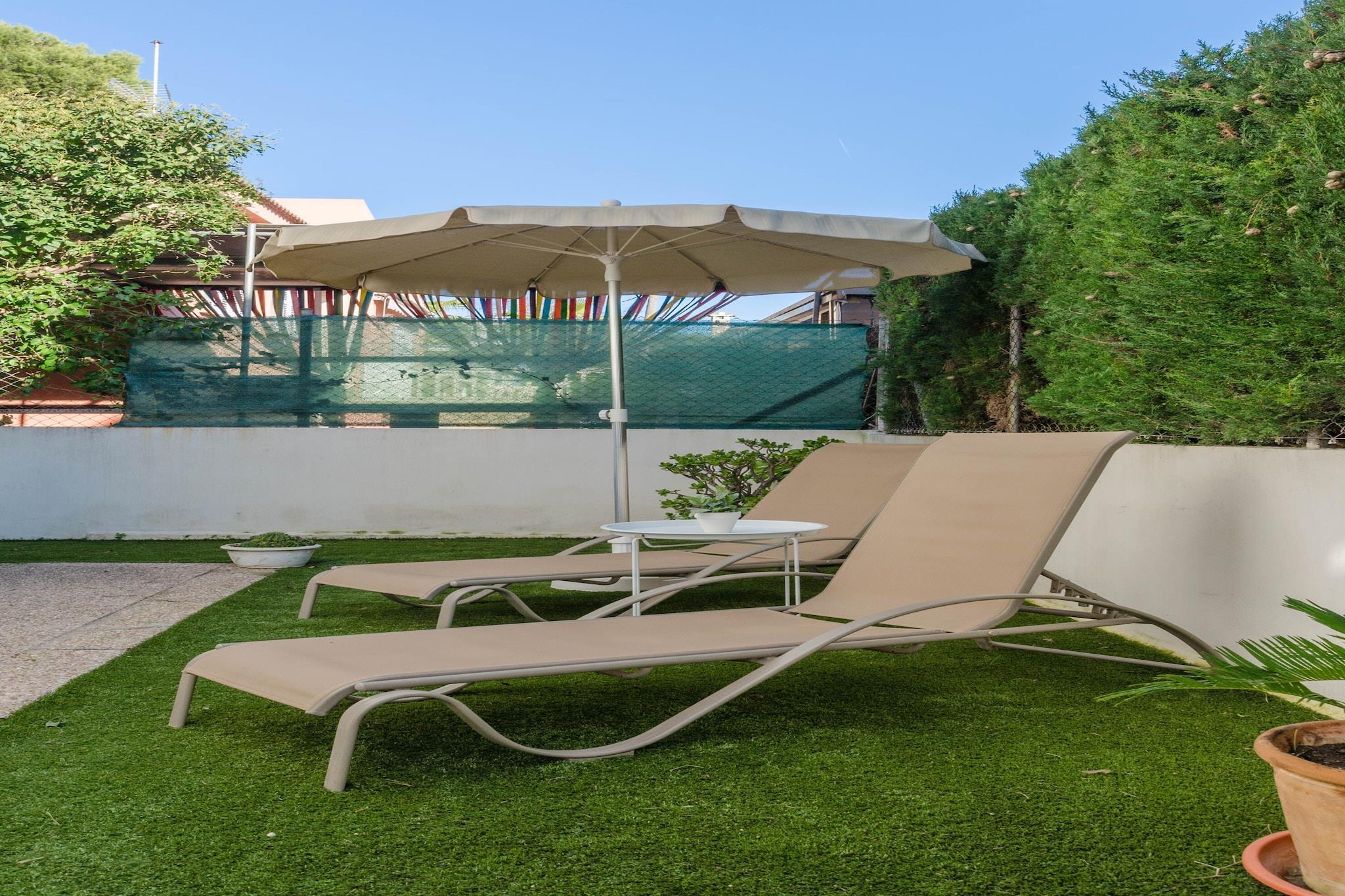 Stue, Køkken(komfur, ovn), soveværelse(2x enkeltseng), soveværelse(enkeltseng, enkeltseng), soveværelse(enkeltseng, enkeltseng), badeværelse(dobbeltseng), badeværelse, kaffemaskine, mikrobølgeovn, opvaskemaskine , køle-fryseskab, badekar, bruser, håndvask, håndvask, toilet, toilet, klimaanlæg, have, havemøbler, 2x solstole, 2x Parasol, barneseng, barnestol