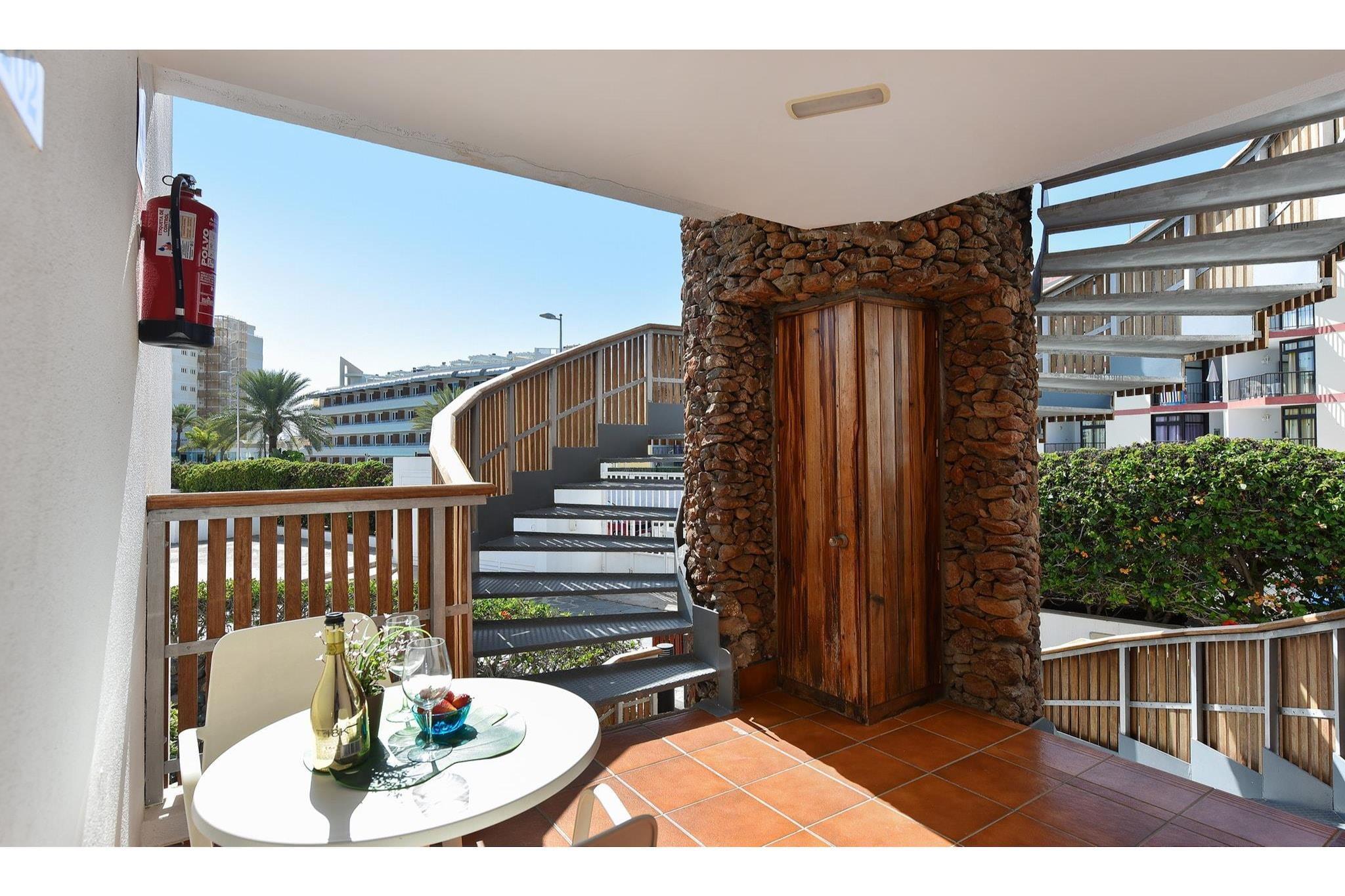 1 værelses lejlighed i Playa del Ingles, i den sydlige del af Gran Canaria. Stranden ligger kun få minutters gang væk, ligesom der er flere restauranter og butikker. Denne dejlige bolig er perfekt til par, et soveværelse med dobbeltseng, et lille køkken og en stue. Det har et badeværelse med bruser og et lille enkelt køkken med vaskemaskine og køkkenudstyr til din rådighed. Det har en overdækket terrasse med spiseplads med udsigt over havet, og det er beliggende i et eksklusivt og meget roligt kompleks med en fælles swimmingpool og smukke haver med direkte adgang til promenaden. Denne lejlighed har en vidunderlig beliggenhed; ved foden af Playa del Ingles-promenaden og 20 meter fra liften, der fører dig direkte til stranden. Det har også adgang til stranden via trapper kun 50 meter fra ejendommen. Alle faciliteter såsom restauranter, supermarkeder, butikker, strande, apoteker, kun to minutters gang. Gåturen fører til strandene i San Agustin i Las Burras og ender i Maspalomas; En meget behagelig gåtur. Dette er den perfekte ejendom til en strandferie med alle faciliteter lige ved hånden.