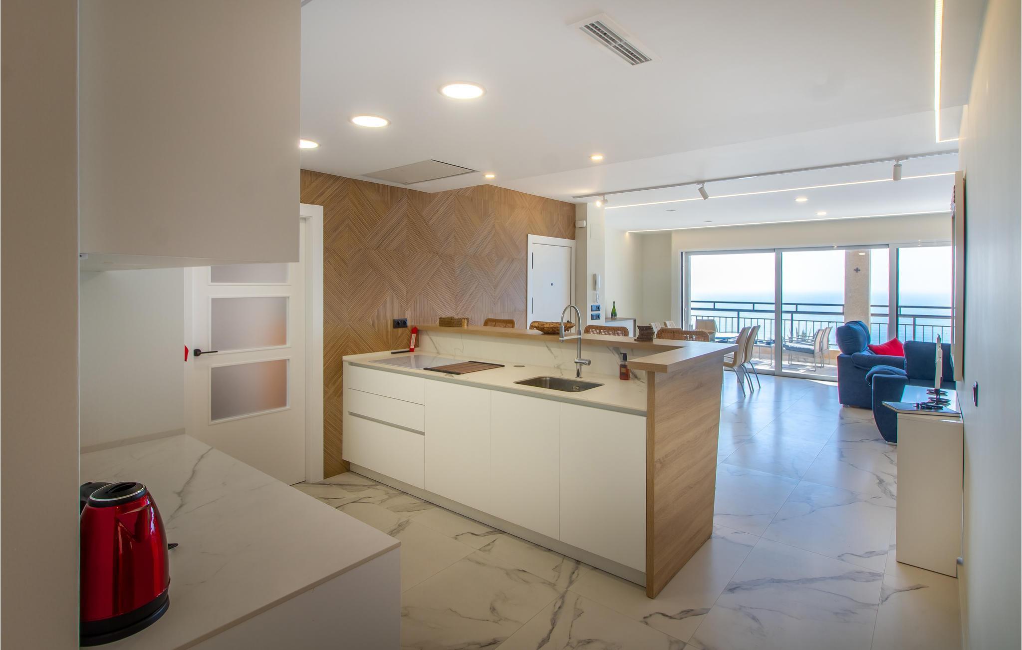 I denne fantastiske lejlighed har I direkte udsigt over Middelhavet fra jeres altan. Lejligheden byder på førsteklasses faciliteter i alle henseender og et lyst interiør af høj kvalitet. Nyd morgenmaden i den friske luft med den inspirerende udsigt over havet, der breder sig som et blåt tæppe under jer. En ferie her vil være præget af sol, strand og hav.