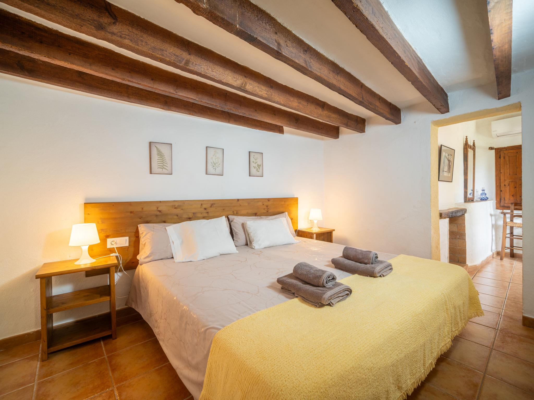 Large, rustic farm estate "Ca na Canta", 2 storeys, semi-detached. Outside the resort, 700 m from the centre of Pollença, in a sunny position residential area (villas), 2 km from the edge of the forest, 7 km from the sea, in the countryside. Private: property 1'600 m2 (fenced), small garden 15 m2 lawn, orchard 2'000 m2, swimming pool angular (4 x 8 m, 32 m2, depth 100 - 200 cm, seasonal availability: 01.Mar. - 30.Nov.). Shower/WC in the pool area, outdoor shower, garden furniture, barbecue. In the house: internet access, WiFi, air conditioning, washing machine. Narrow motor access. Parking on the premises. Supermarket 1.5 km, shopping centre 1.8 km, restaurant 650 m, bar 600 m, bakery 900 m, 18 minute walk to the centre, bus stop "Pont Romà 1 (42045)" 500 m, sandy beach "Port de Pollença" 7 km. Sports harbour 7 km, golf course (18 hole) 4.2 km, riding stable 2 km, sports centre 1.5 km, walking paths from the house 1 km, cycle lane 500 m. Nearby attractions: Playa de Formentor 14 km, Pueblos:Port Pollença, Alcúdia, Sa Pobla, Monasterio de Lluc 21 km, Cuevas de Campanet 17 km, Bodega Can Axartell 9 km, Palma City 54 km. Hiking paths: Puig de Maria, Serra de Tramuntana, Cala Boquer. Please note: car recommended. Object suitable for 8 adults. The owner does not accept any youth groups. Airfield 60 km from the property.