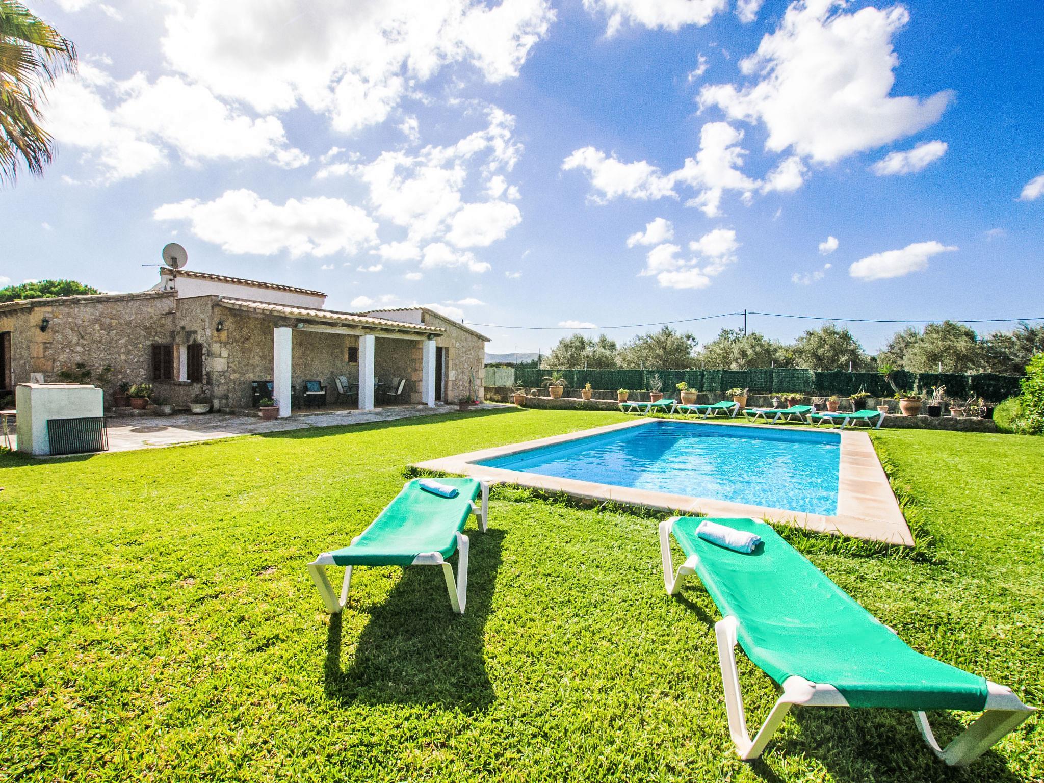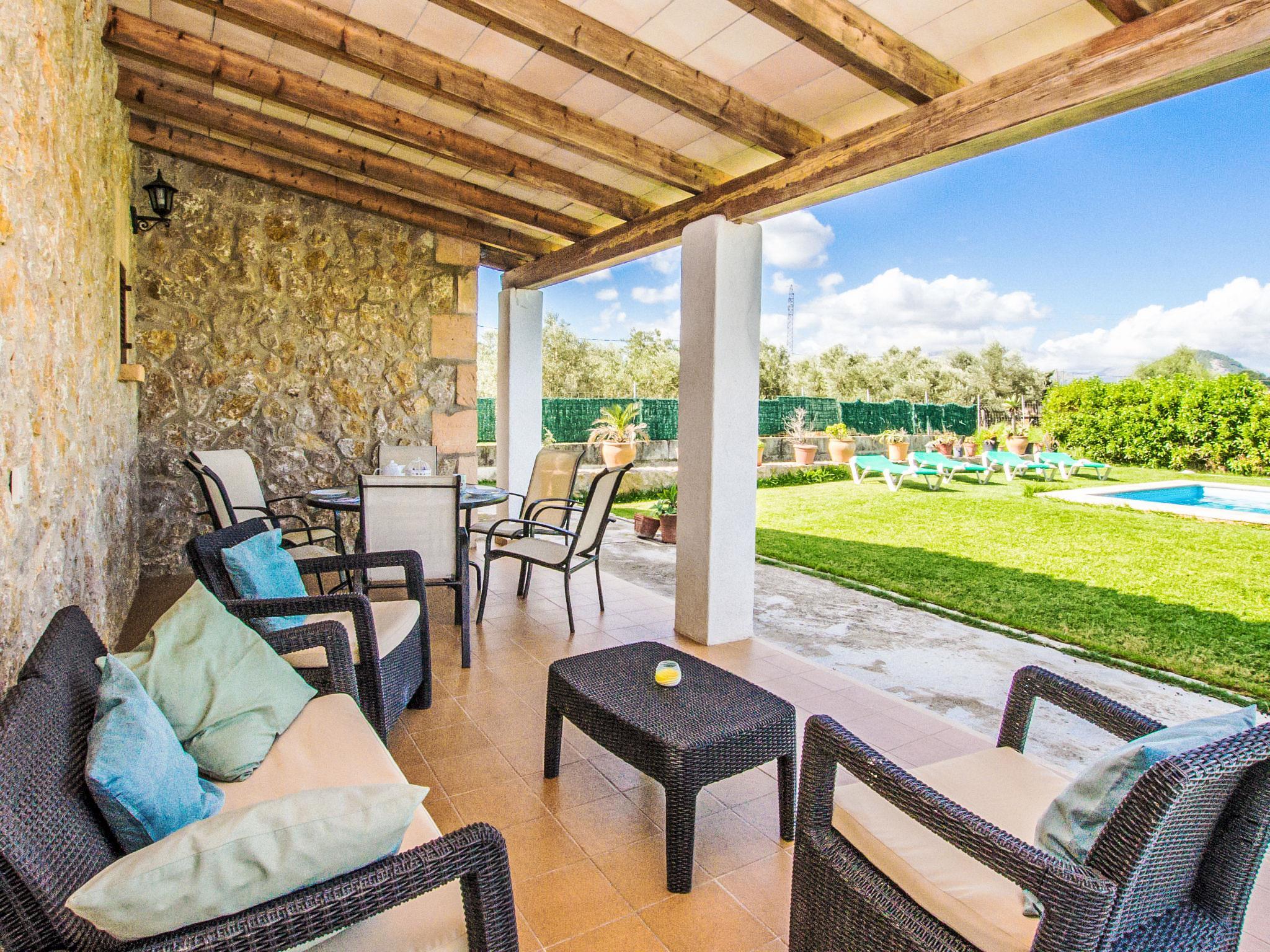 8 km from Puerto Pollensa: Cosy, rustic farm estate "Can Mateu", surrounded by fields. Outside the resort Pollença, in a secluded, quiet position, 3 km from the sea, in the countryside. Private: garden with lawn and wildlife garden, swimming pool angular (8 x 4 m, seasonal availability: 01.Jan. - 30.Dec.). Patio, pergola, garden furniture, barbecue. In the house: internet access, WiFi, washing machine. Parking at the house on the premises. Shop 3 km, grocery 3 km, shopping centre 3 km, restaurant 3 km, bus stop 2 km, sandy beach "Platja de Port de Pollença" 3 km. Please note: car recommended. Groups of teenagers on request only. The owner does not accept any youth groups. Animals in the neighbourhood.