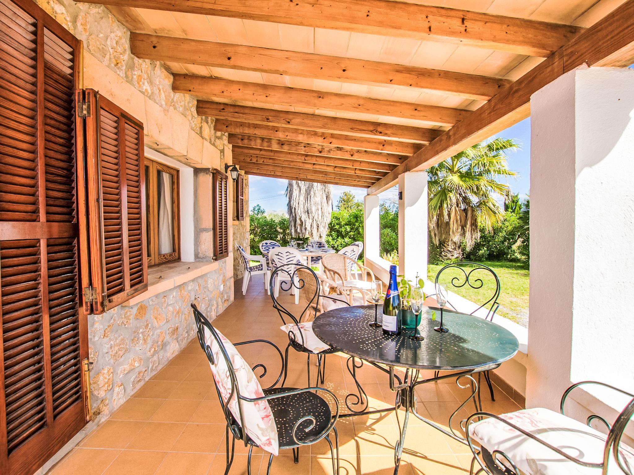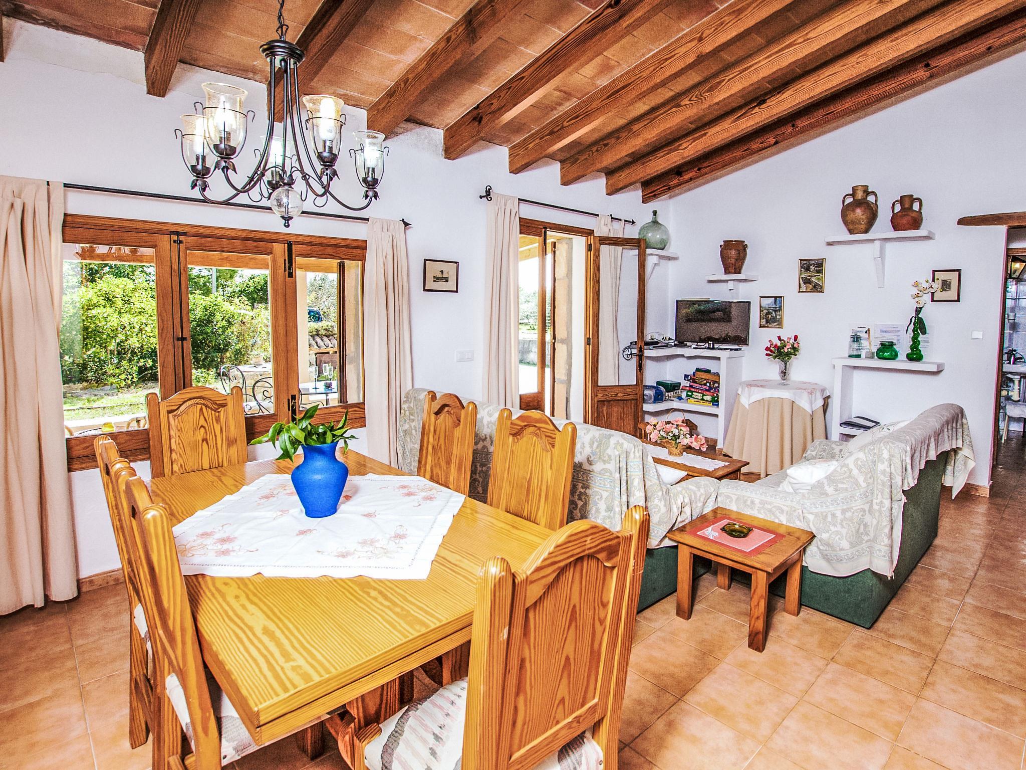 "Can Mateu", 4-room house 140 m2. Comfortable and wooden furniture furnishings: living/dining room with dining table, satellite TV and flat screen. Exit to the terrace. 2 rooms, each room with 2 beds (90 cm, length 190 cm), electric heater and fan. 1 room with 1 french bed (160 cm, length 200 cm), bath/bidet/WC, electric heater and fan. Kitchen (4 hot plates, oven, dishwasher, toaster, kettle, microwave, electric coffee machine) with dining table, boiler (100 litres). Exit to the garden. Shower/WC. Terrace roofed. Terrace furniture. Facilities: washing machine, dryer, iron, children's high chair, baby cot for up to 3 year olds, hair dryer. Internet (WiFi, free). USB Internet. ETV/458 // Reg. Nr.: ESFCTU00000703000040489100000000000000000000ETV/4587