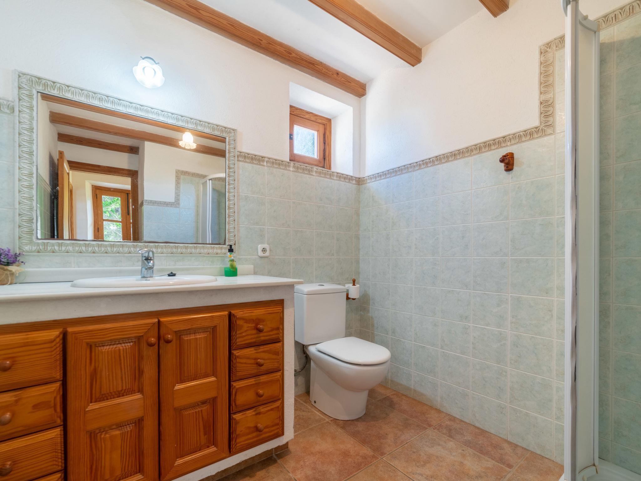 Beautiful farm estate "Can Segue", 3 storeys, detached, surrounded by meadows and fields. 7 km from the centre of Pollensa, 14 km from the centre of Puerto Pollensa, 23 km from the centre of Inca, on top of a hill, 8 km from the sea. Private: property 4'000 m2 (fenced), well-kept terraced garden with wildlife garden and trees, meadow, swimming pool (9 x 5 m, seasonal availability: 01.Jan. - 31.Dec.). Outdoor shower. Stepped path to the house. Parking on the premises. Shop 6 km, bus stop "Pollença" 2.5 km, sandy beach "Puerto de Alcúdia" 8 km. Golf course (9 hole) 10 km. Please note: car recommended.