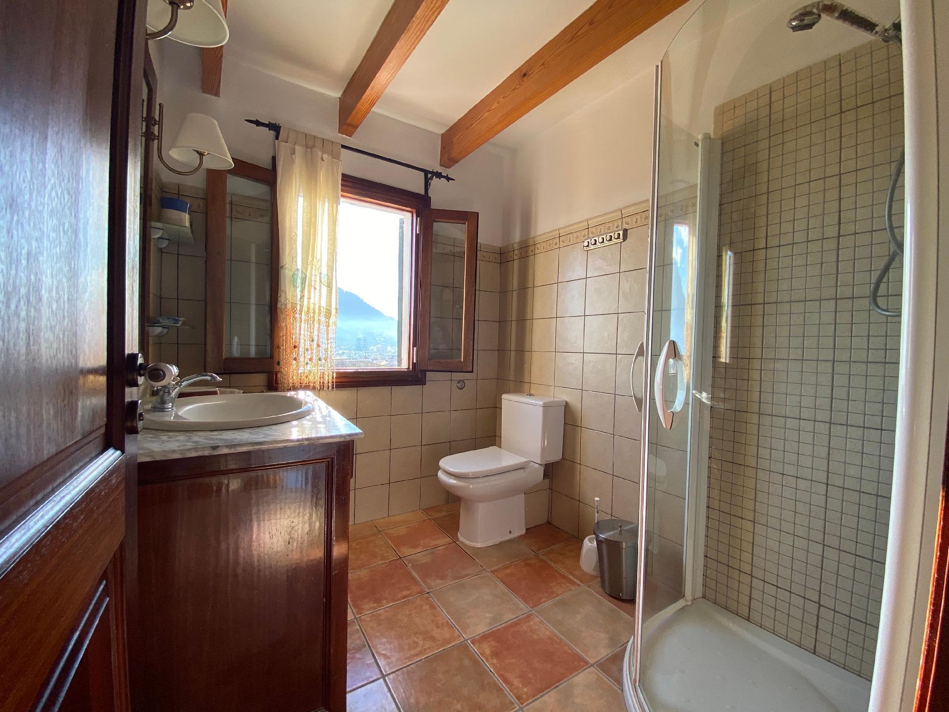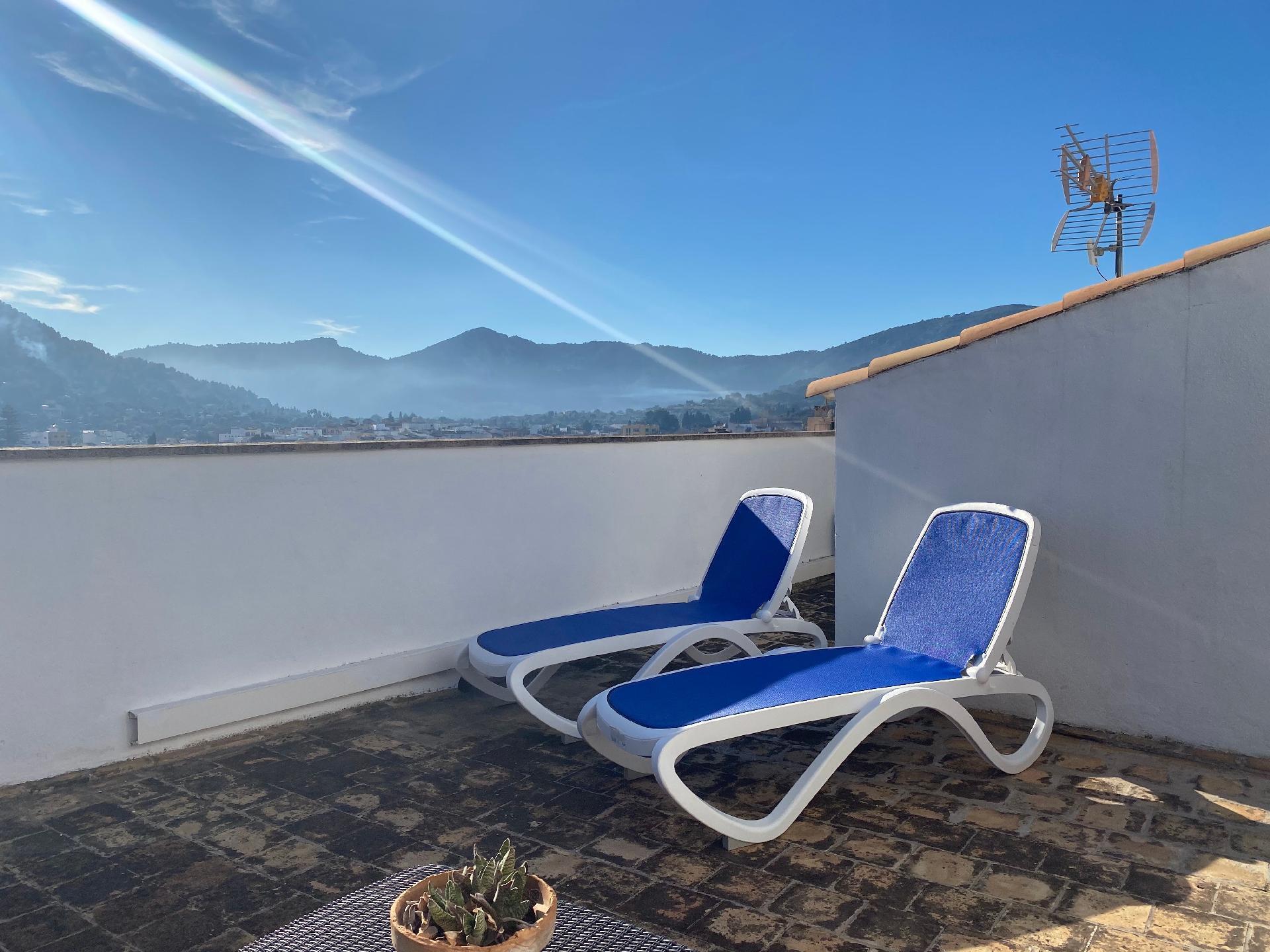 The house is divided into 3 floors, on the ground floor we have a large and beautiful entrance, a dining room equipped for 6 people, a living room with satellite TV and DVD player and a fully equipped kitchen with induction cooker, oven, fridge-freezer, dishwasher and microwave. Both the kitchen and the dining room have access to a large terrace equipped with table and chairs to enjoy eating outdoors; on this terrace there is a large bathroom with bathtub, and a laundry area with washing machine.on the first floor, there are the bedrooms, 2 of them double with views to the street and the third one with double bed and with wide views to the village of Pollensa and Puig de Maria; there is also a bathroom with hydromassage shower.On the first floor there is a large study room equipped with a sofa bed, suitable for a child. From here there is access to a second terrace, very spacious and sunny with spectacular views and with a lot of privacy equipped with hammocks. The whole house has central heating, air conditioning and wifi.