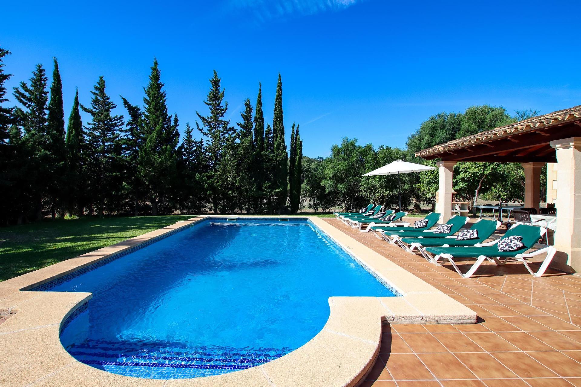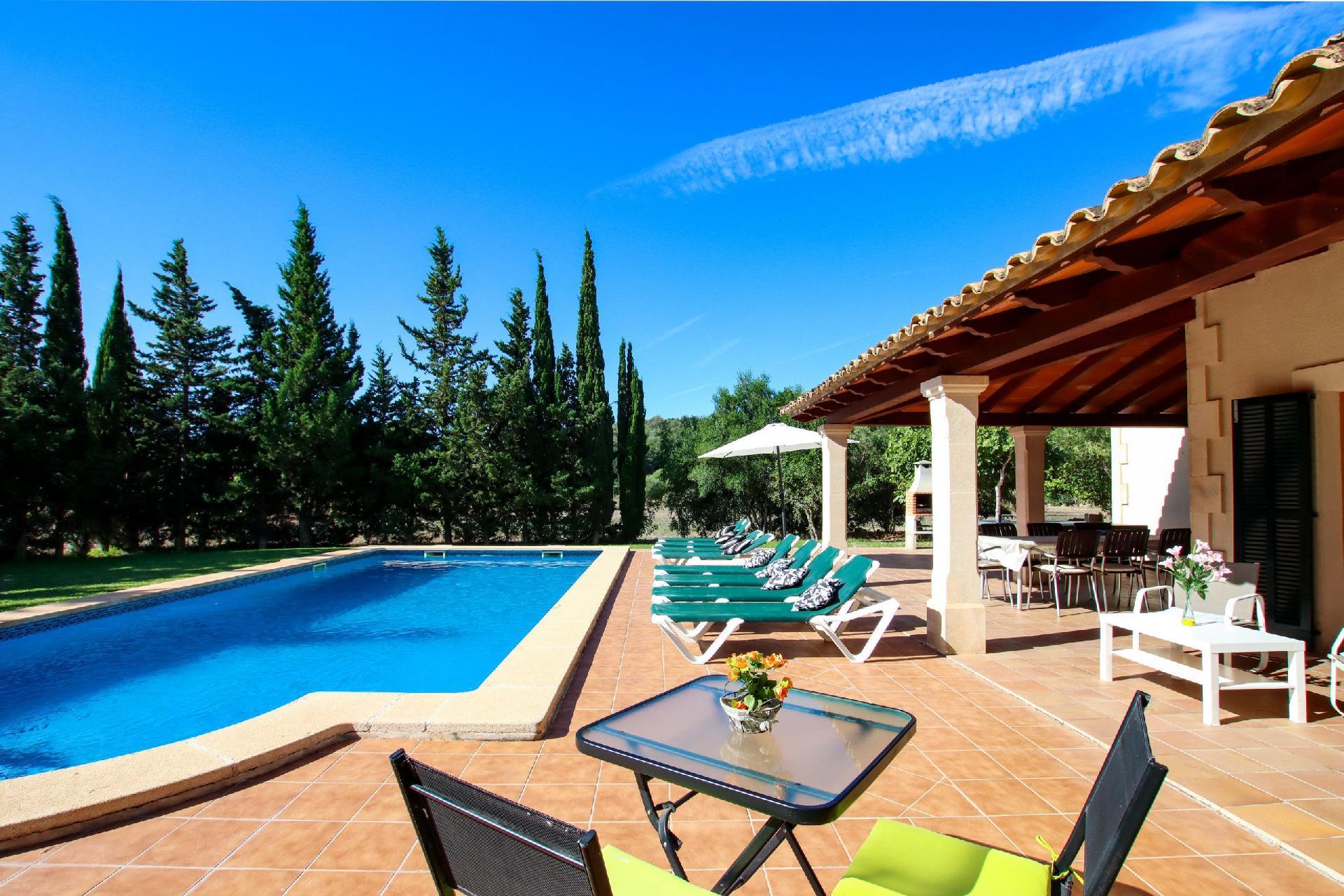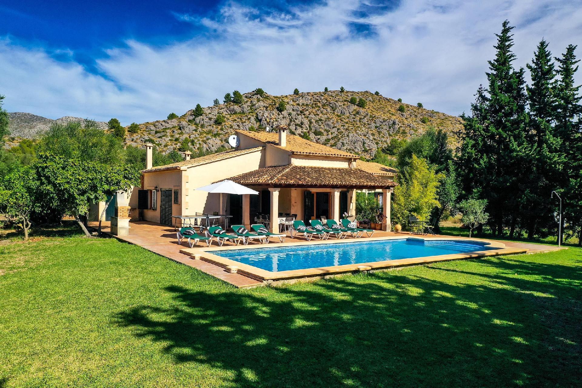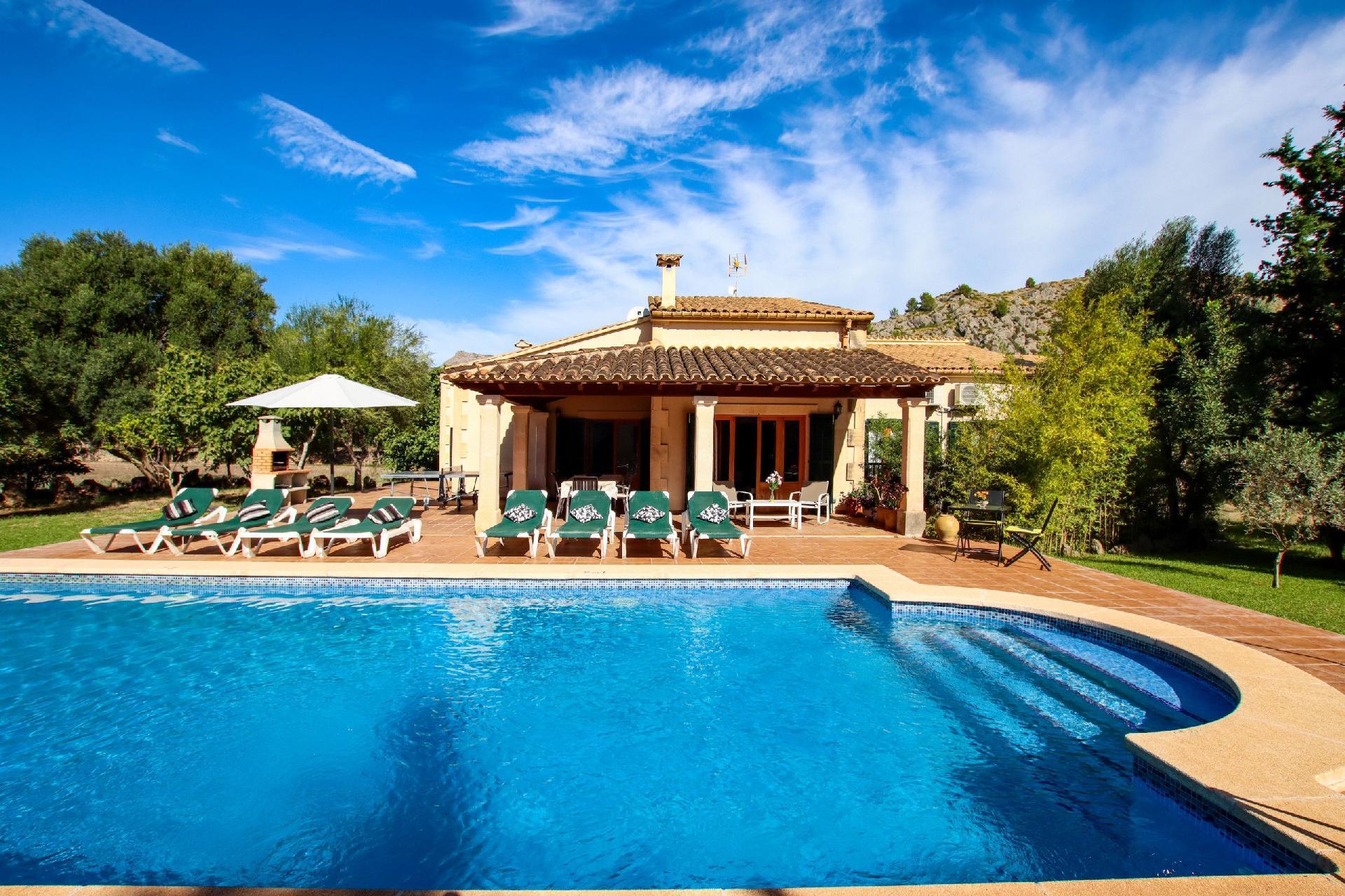 This beautifully restored single storey house is situated in the peaceful countryside between Pollensa, Puerto Pollensa and Cala San Vicente and offers a comfortable stay for your holiday. A covered terrace by the Roman style swimming pool provides a shaded area to relax and enjoy al fresco meals while the sunny surroundings of the pool and the large garden offer a fantastic place for sunbathing.