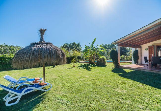 This is a pretty traditional stone house for 6 people with private pool. All set on one level Can Blanco is found in the peaceful countryside just outside of Pollensa Old town (approx. 2 km). Fully equipped open plan kitchen with dishwasher, microwave etc. The open plan kitchen, dining, living area is very spacious and airy. The living area has comfortable sofas, TV, DVD and Wifi connection. This is an ideal hub to join together and plan your day, have breakfast and enjoy the garden views from the large windows.