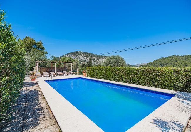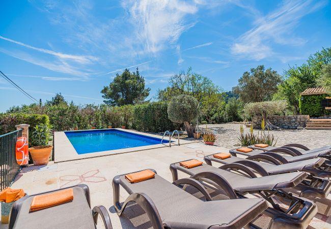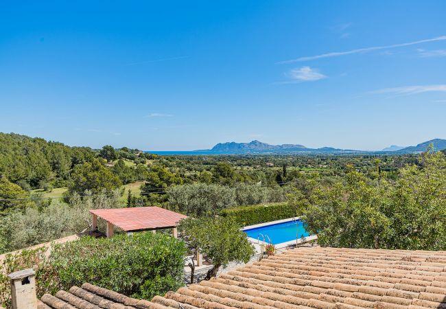 Across the garden is the sun terrace and swimming pool. The spacious sun terrace has six sunbeds. From this area the views are stunning. There is the Puig de Maria mountain to the left and the beautiful bay of Puerto Pollensa in front. The mature gardens are well kept and are vibrant with a variety of shrubs, trees and grassed gardens offering guests a feeling of privacy whilst being surrounded by nature.