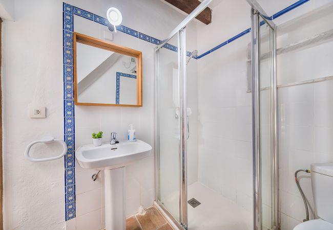 On the ground floor there is also a suite, a private sitting room with sofa leads through to a double bedroom and small en suite shower room. The terrace is also accessible from this room. There is a separate bathroom with a shower / small bath combination, toilet and bidet to be found in the entrance hall of the house.