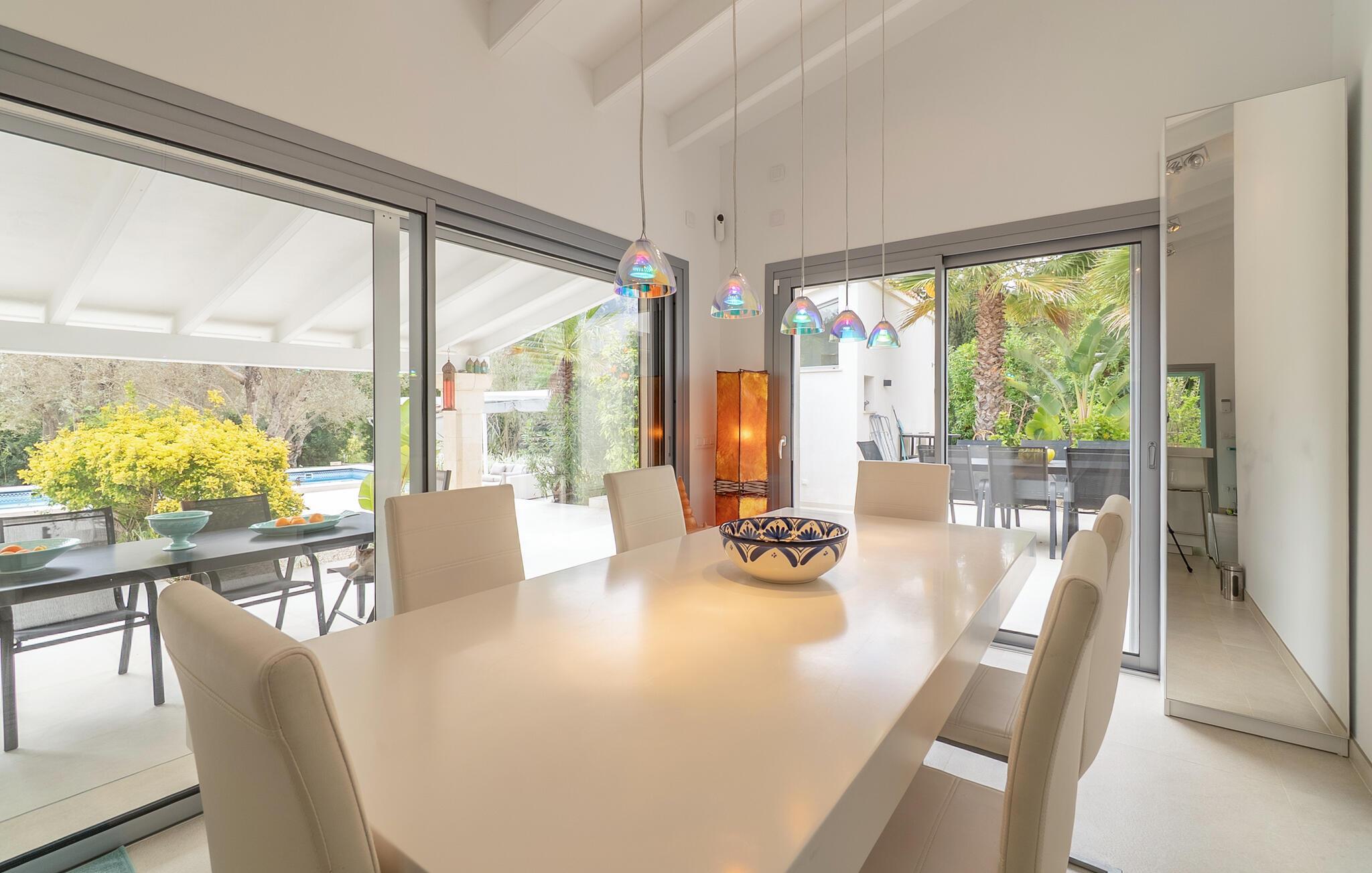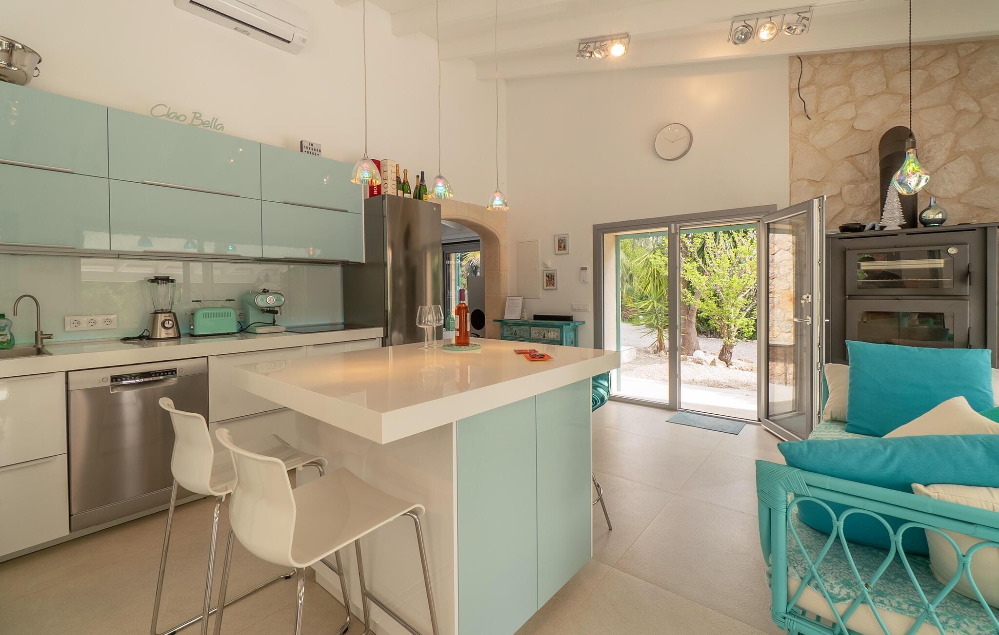 Beliggende i det rolige landskab og alligevel kun få minutters kørsel fra landsbyens torv og gode indkøbsmuligheder, byder denne smukke finca jer velkommen. Kom ind og bliv inspireret af det lyse og friske interiør. Fremstil middelhavsretter i det indbydende køkken, sæt jer ved det stilfulde spisebord, og efter en lang dag kan I gøre det behageligt i den ekstravagante sofa til en afslappende filmaften.