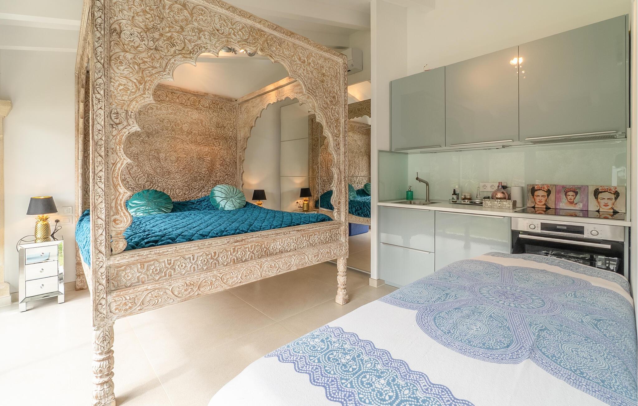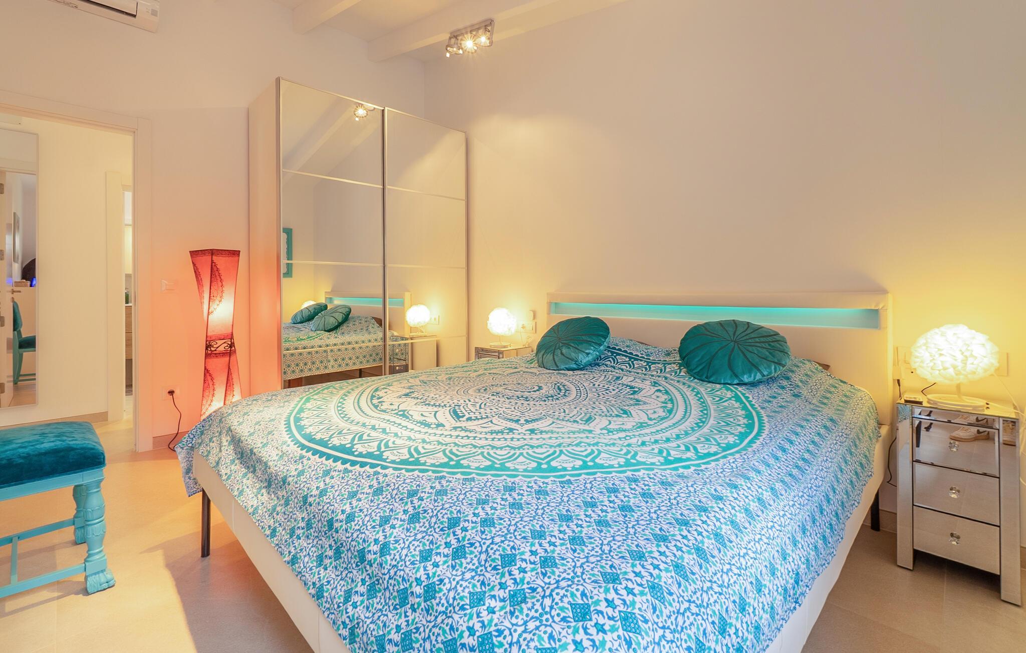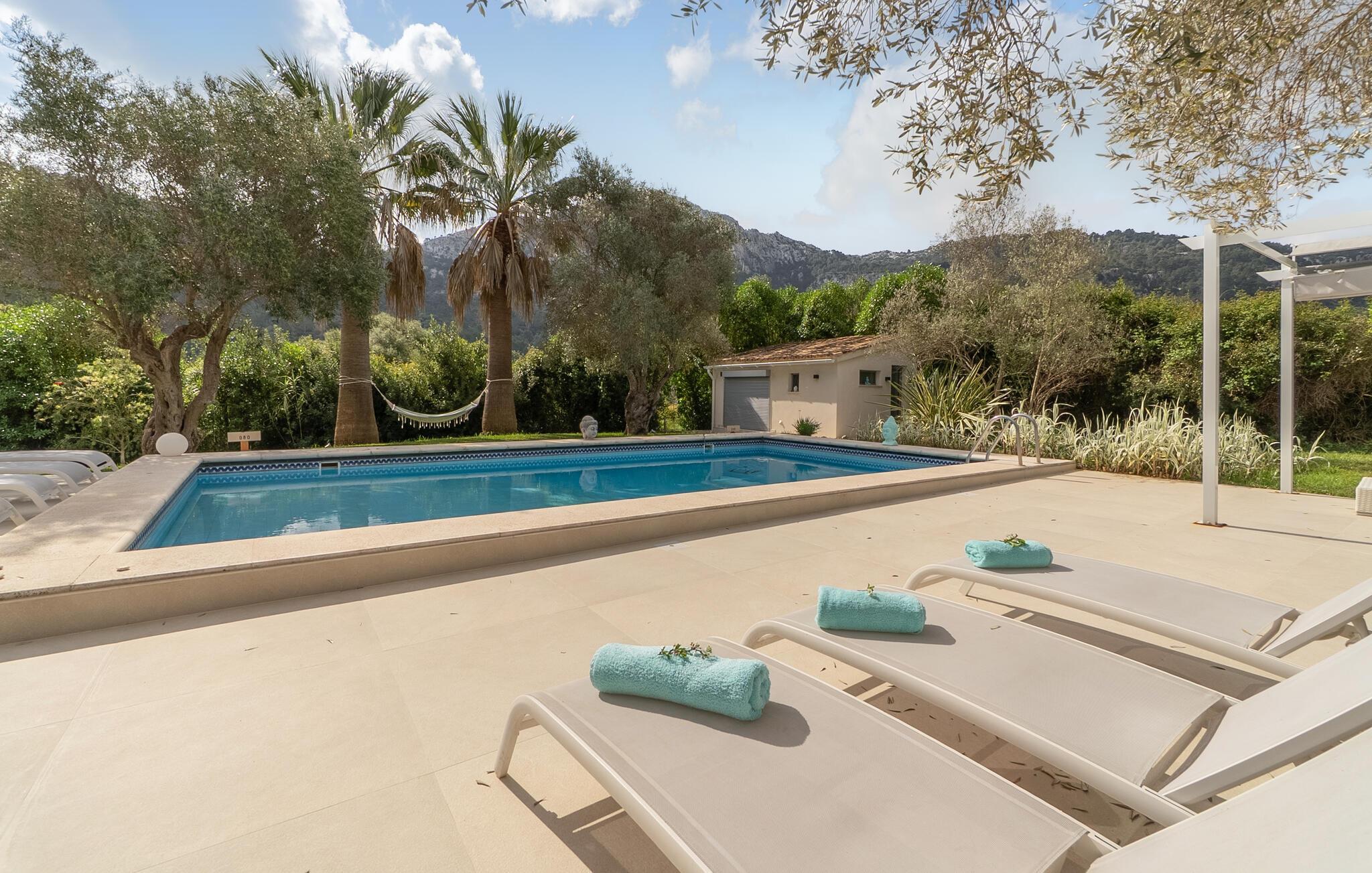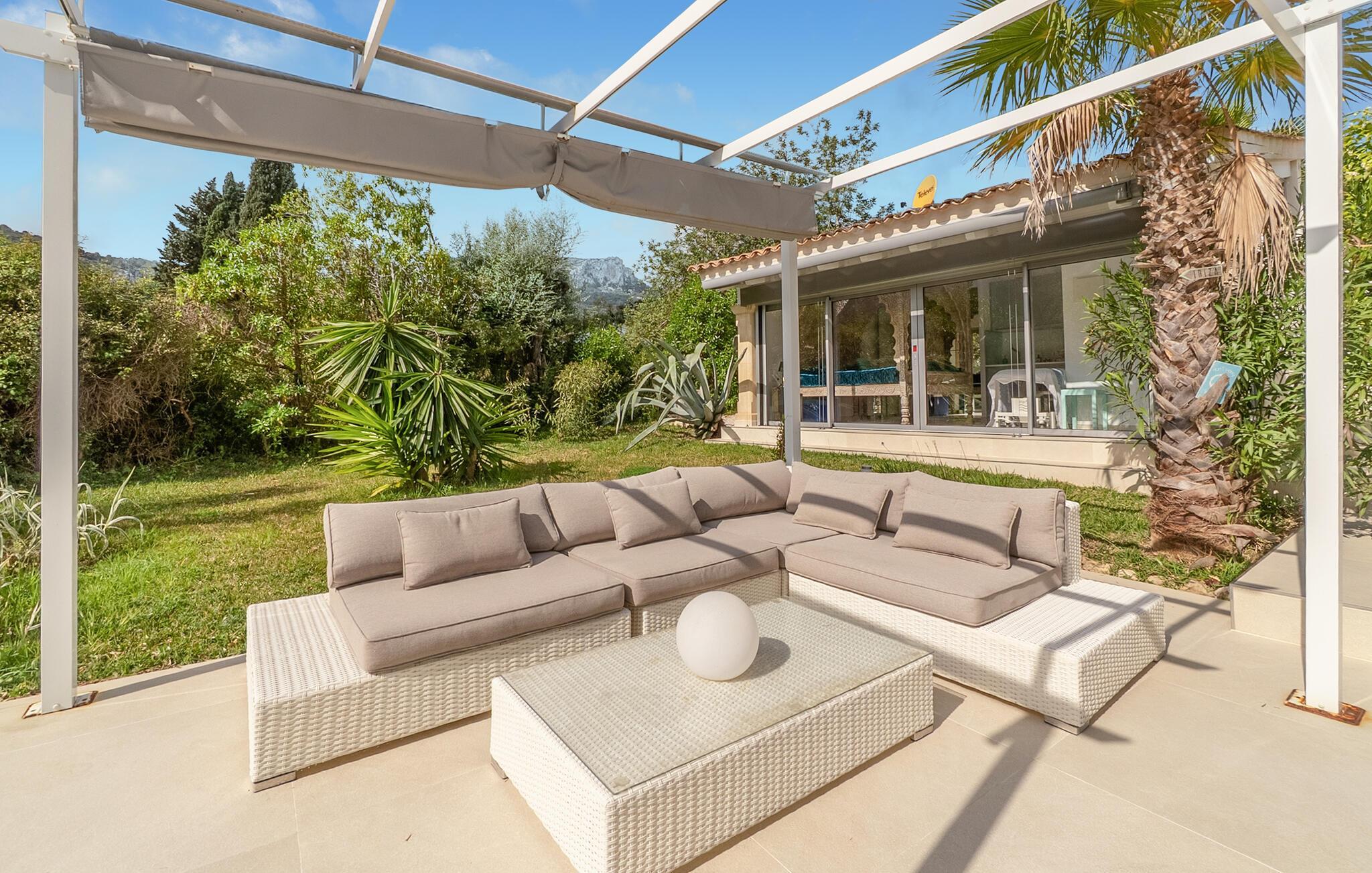 Det velholdte, afsidesliggende udendørsområde er perfekt til at nyde middelhavsklimaet fuldt ud fra morgen til aften. Tag en afslappende svømmetur i poolen i den milde morgensol, og fornøj jer selv med friskpresset appelsinjuice til morgenmad på den overdækkede terrasse. Nyd den fredfyldte atmosfære i hængekøjen eller den balinesiske seng og nyd de lune sommernætter med vin og stearinlys i den elegante udendørs lounge.