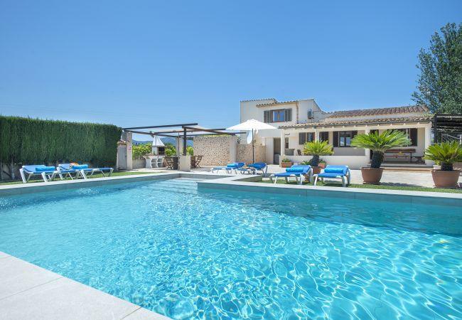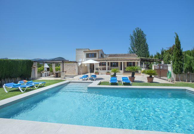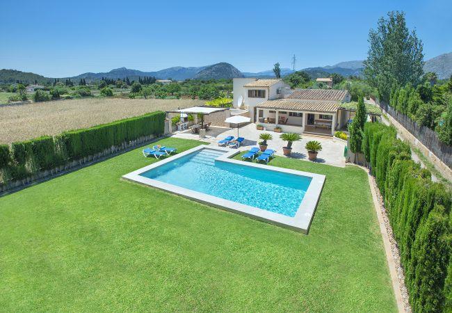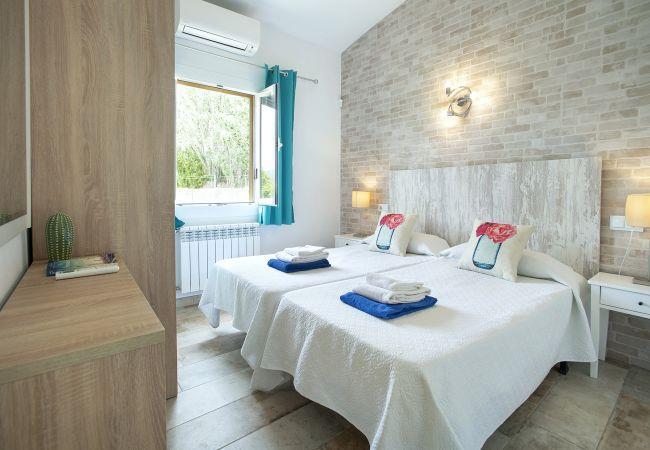 Villa Madrave is close to the Tramuntana mountains and nearby the most beautiful Mallorcan beaches. Come and spend a few days with your family and friends resting by the pool or touring around Pollensa. Perhaps you knew it as Villa Bultat, today Villa Madrave is still a beautiful, spacious, well-furnished country house with all the amenities you need to spend a memorable holiday. This villa was designed to benefit from daylight. Even while you share a family meal, watch some series at the living room, web surfi with its free WIFI, or prepare for a restful night, you will get natural light and a view of the garden and the mountains.