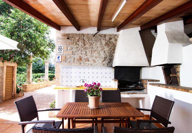 This charming stone farmhouse lies in the peace and tranquillity of the beautiful Mallorcan countryside not far from Pollensa and just a short drive from the glorious coastline. Surrounded by magnificent views, it is a villa full of Mallorcan charm and character with its beamed ceilings, rustic tiled floors and open stone walls.
