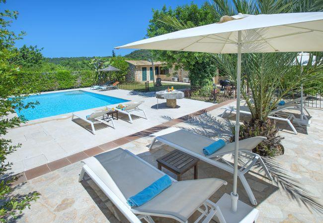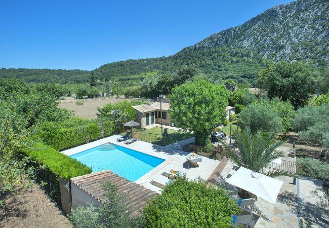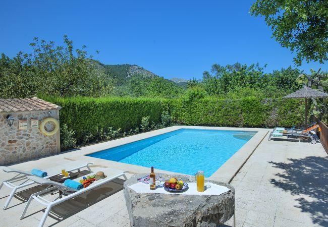 Enjoy fantastic family holidays and tranquility in Villa Pau. This charming 3-bedroom country house convinces with great mountain views, the neighbouring Tramuntana Mountains create a picturesque backdrop. The fantastic pool and garden area with pool fence is perfect to spend memorable holidays. It has been made great use of both local stone and designs,combined with authentic Spanish features. The cottage style villa, which is all on one level is bright and provides good and child friendly holiday accommodation. FREE WiFi is included.