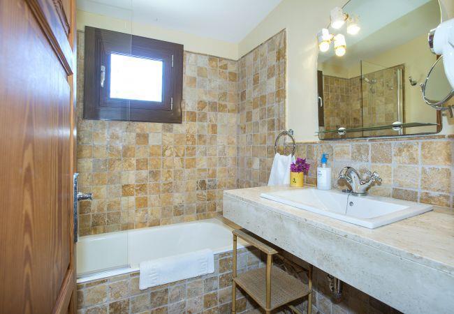 From the lounge, doors open onto the the beautiful covered terrace with easy access to the pool and sunbathing area. If you prefer the relief of the shade, the wooden covered terrace with brick BBQ provides a lovely cool spot for dining all fresco. Villa Pau is situated in one of the most privileged areas of Pollensa, great mountain views combined with tranquility.