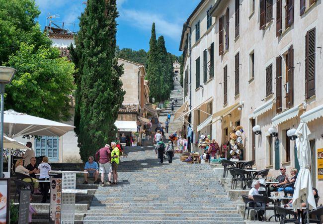 Located next to Pollensa Old Town, you can explore boutiques, traditional restaurants, and local produce stands, or pick up extra goods at supermarkets. Any Sunday, you could visit its open-air market and find fresh farm products.
