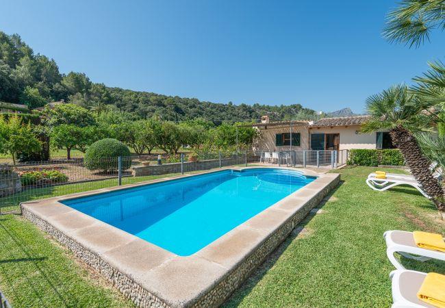 Villa Pont Roma (El Camp Redo) de Pollença is a wonderful country house located on a farm that enjoys fantastic exteriors, with a lawned garden, fruit trees and a fenced 8 x 4 meter pool with spectacular views of the mountains.