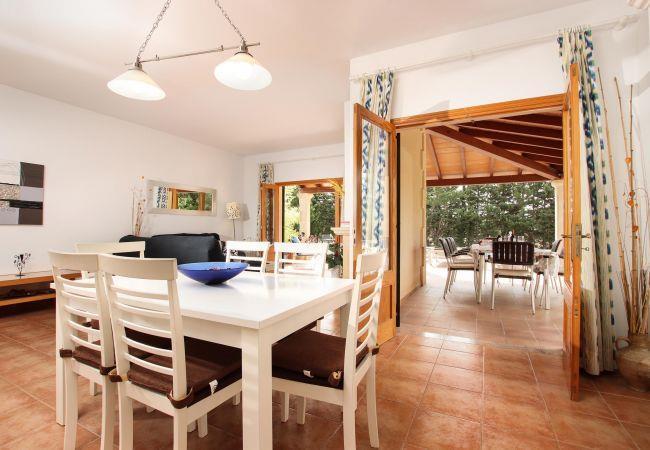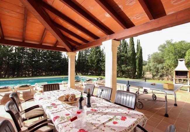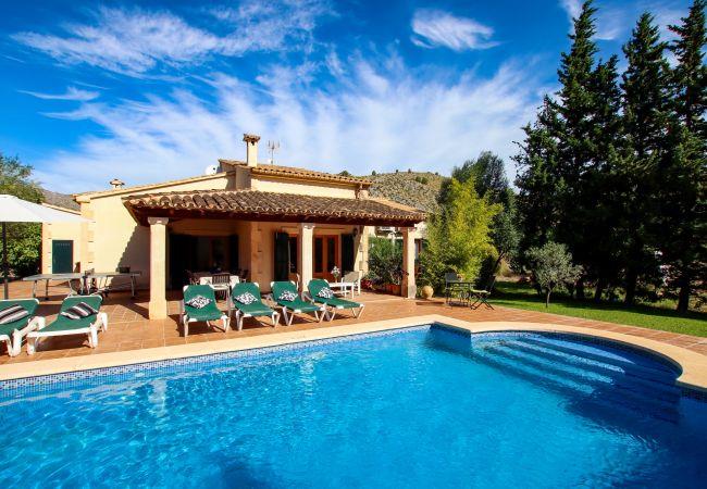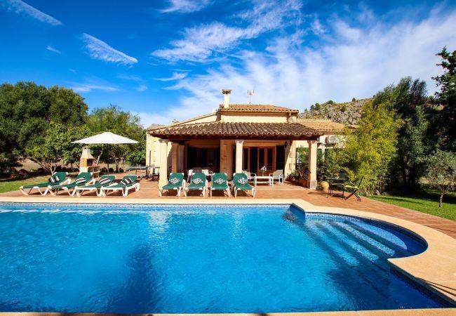 This lovely, restored, stone villa sits in the peaceful countryside between Pollensa, Puerto Pollensa and Cala San Vicente and offers spacious and comfortable holiday accommodation. A covered terrace alongside the cool, roman style, swimming pool offers a shaded area to relax and eat al fresco meals whilst the sunny poolside terrace and ample lawned gardens provide plenty of space for the sun worshippers to perfect their holiday tan. It is a single storey accommodation.