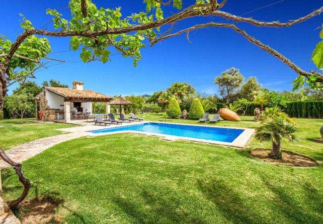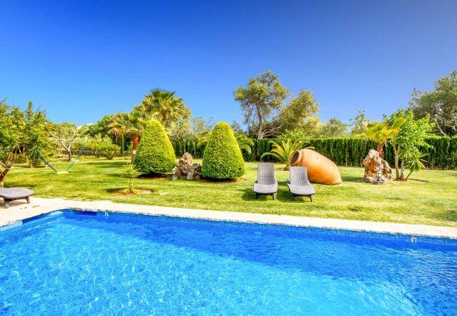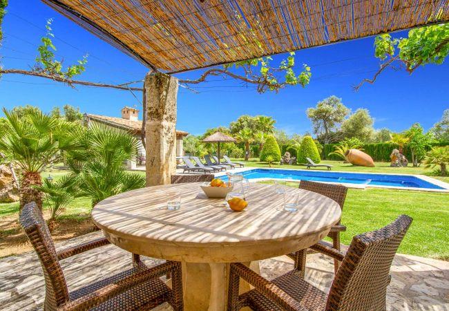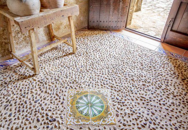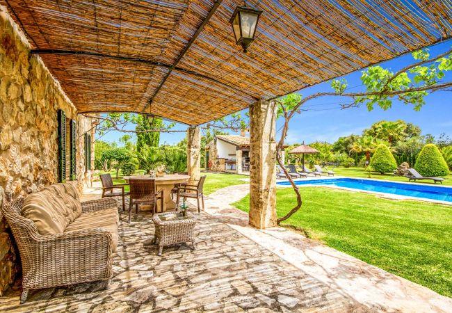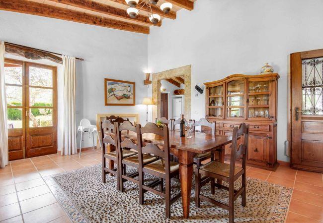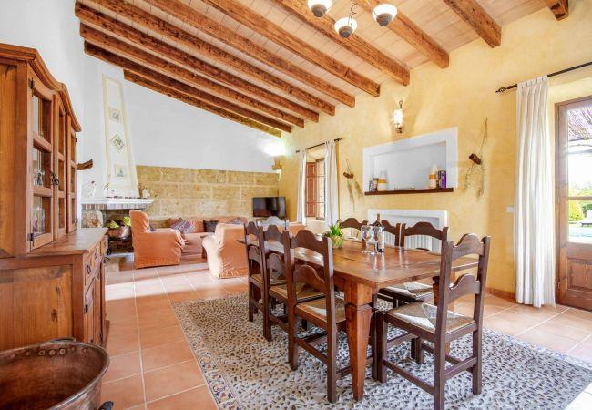 Villa Roig is a recently constructed house in the Mallorcan style, with traditional decor. A large wooden door gives us access to the beautiful entrance of the house. It also has a spacious dining room fully equipped with sofas, satellite TV and a large ornamental fireplace. The dining room has a large wooden table with chairs for 6 diners. From the house we access the beautiful terraces.