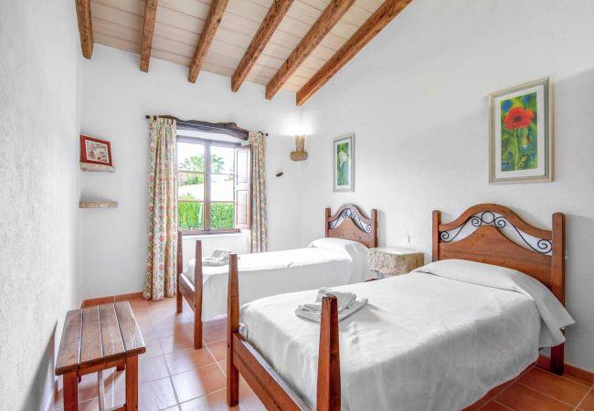 The property offers three bedrooms: a double bedroom with wardrobes and beautiful stone bedside tables and with a full en-suite bathroom, and two twin bedrooms also with wardrobes. These two twin bedrooms share a full bathroom. All bedrooms are air-conditioned, which are programmed for certain hours of the day (during the afternoon and all night).