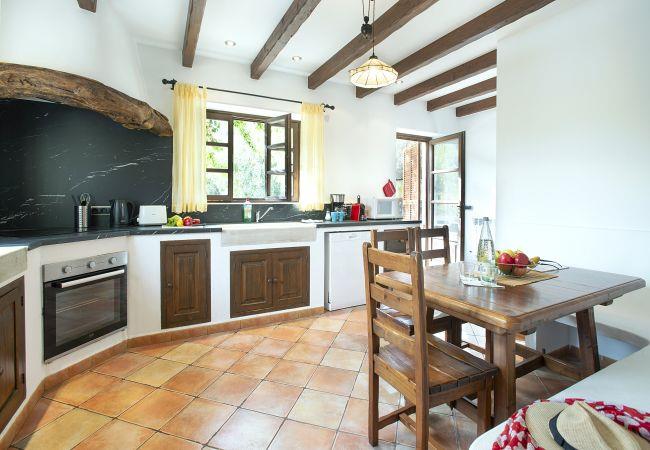 Inside, the Can Morro villa is distributed over two floors. On the ground floor there is a fully equipped kitchen with state-of-the-art appliances, including oven, microwave, dishwasher and fridge. It also has a dining area and a cosy living room with satellite TV to enjoy a movie or a good local wine.