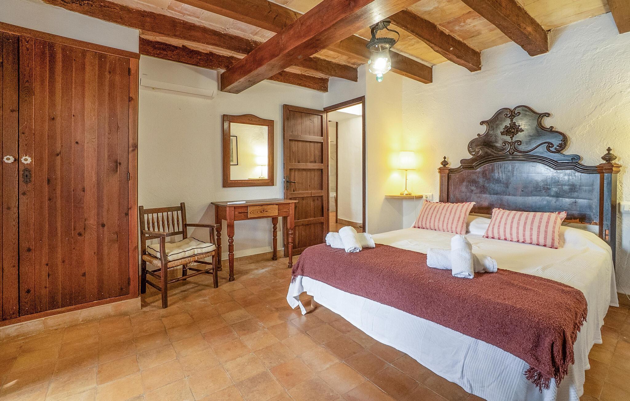 Denne store finca med rustik charme byder jer velkommen med synlige bjælker, stemningsfulde stenvægge og en kærlig indretning. Den stilfulde dekoration og de varme farvetoner skaber en hyggelig atmosfære, der indbyder til afslapning. I det veludstyrede køkken kan I tilberede lækre måltider, mens den rummelige stue er perfekt til hyggelige aftener. Udenfor venter en stor have med middelhavsplanter, hyggelige terrasseområder, en grill og en skøn swimmingpool med liggestole.