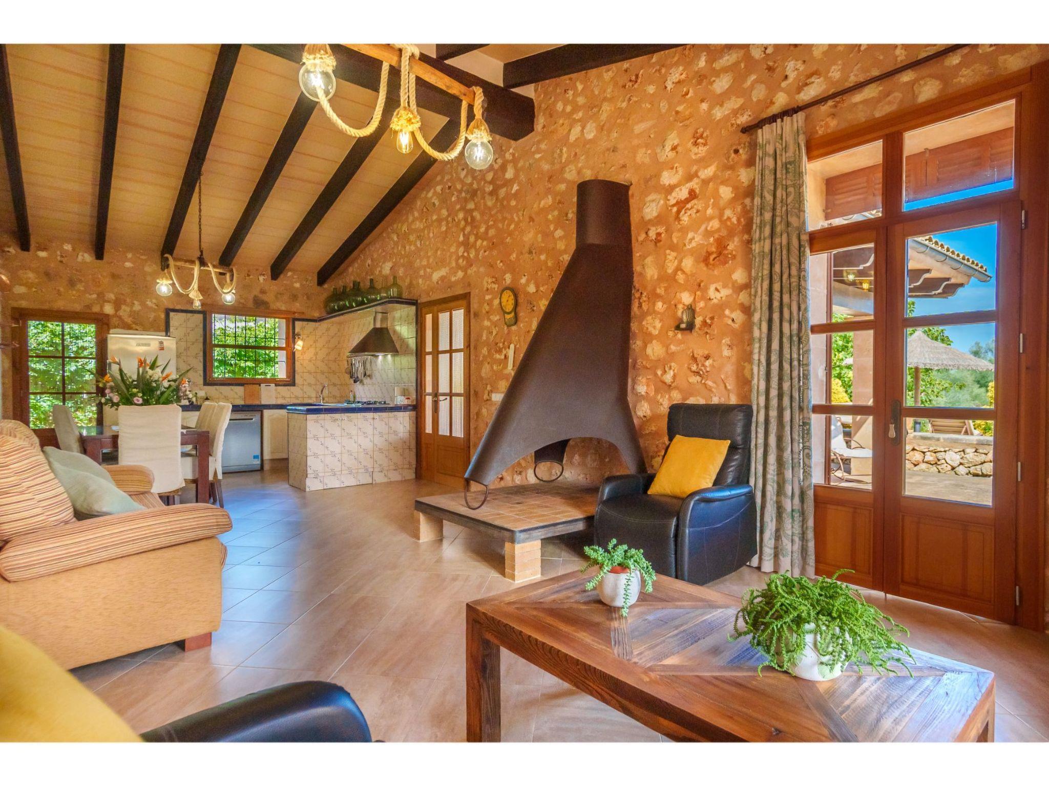 "Los Geranios", 5-room house 150 m2. Object suitable for 6 adults. Comfortable and rustic furnishings: open living/dining room with open-hearth fireplace, dining table, satellite TV, flat screen, air conditioning and forced-air heating. Exit to the patio, to the swimming pool. 1 double bedroom with 1 french bed (180 cm, length 200 cm), air conditioning and forced-air heating. 1 double bedroom with 2 beds (90 cm, length 200 cm), air conditioning and forced-air heating. 1 double bedroom with 2 beds (90 cm, length 190 cm). Open kitchen (3 hot plates, oven, dishwasher, toaster, kettle, microwave, freezer, electric coffee machine). Exit to the patio, to the swimming pool. 2 showers/bidet/WC. Large patio. Terrace furniture, barbecue, deck chairs (4), covered balcony, sitting area. Beautiful view of the swimming pool, the garden, the countryside and the forest. Facilities: washing machine, iron, children's high chair, baby cot for up to 2 year olds, hair dryer. Internet (WiFi, free). Suitable for families. VT1938 // Reg. Nr.: ESFCTU000007008000033908000000000000000000000VT/19386