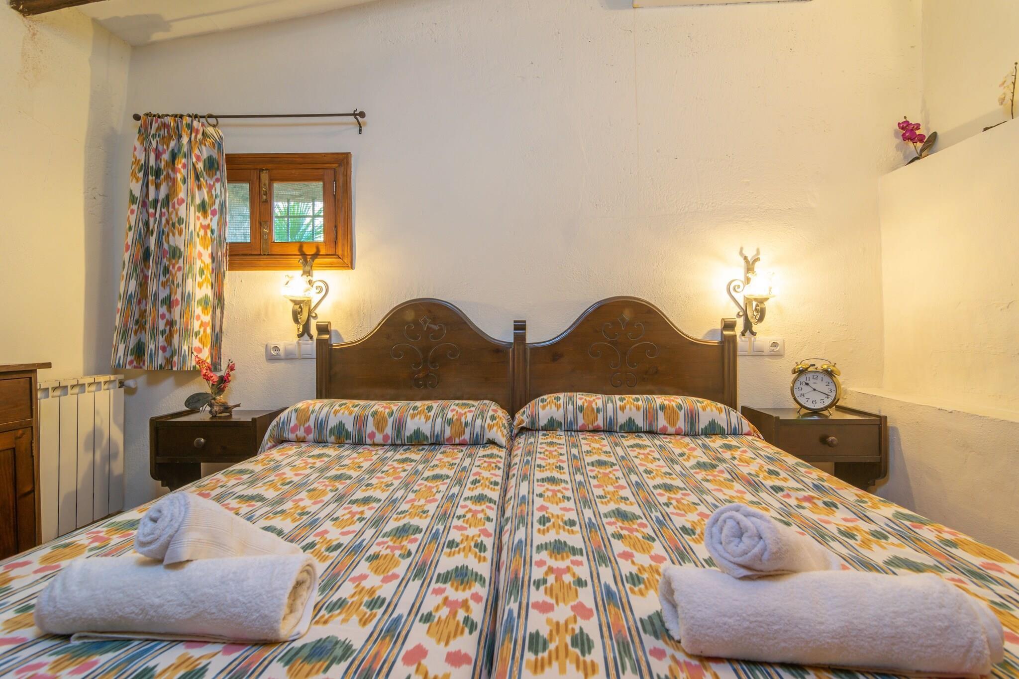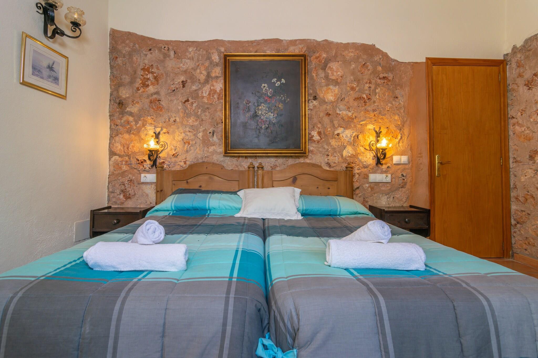 Na een leuke dag met het bezoeken van verschillende stranden op het eiland, is er niets beters dan terug te keren naar dit prachtige pand en te ontspannen in de ruime buitenkant. Ze kunnen afkoelen in het chloorbad van 11x5 meter en een diepte variërend van 0,5 tot 2 meter. Later kunt u zowel buiten als in het glazen bijgebouw met airconditioning een heerlijke barbecue bereiden en er zowel binnen als onder de veranda van genieten. Het terrein is omheind en de privacy is totaal. Bij binnenkomst van de woning vinden we de keuken voorzien van een keramische kookplaat en waar tevens de wasmachine staat. De 3 slaapkamers bevinden zich eveneens op de begane grond en zijn alle drie voorzien van twee eenpersoonsbedden en airco. Als u met uw baby reist, kunnen wij ook een kinderbedje en een kinderstoel ter beschikking stellen. Er zijn twee badkamers op de begane grond, één met douche en de andere met ligbad. Als we de trap opgaan, vinden we de ruime woonkamer met airconditioning waar u kunt ontspannen en naar de Smart TV kunt kijken. Het huis ligt op een landelijke locatie, omgeven door velden en rust. Prachtige stranden zoals Es Trenc liggen echter op slechts 19 km afstand. De dichtstbijzijnde stad, Porreres, biedt alle noodzakelijke diensten voor een zelfstandig verblijf, zoals restaurants, supermarkten en bars. U kunt ook andere nabijgelegen plaatsen bezoeken, zoals de Santuari de Cura, de Talaiot Capocorp Vell of zelfs naar Palma gaan en een middagje winkelen en bezienswaardigheden bekijken. De open haard is decoratief. Opmerking: deze huuraccommodatie accepteert geen klanten jonger dan 25 jaar, behalve in gevallen waarin het om een ??gezinsverblijf gaat. We hebben kopieën van het identiteitsbewijs van elke persoon nodig om de reservering te kunnen accepteren. Voor eventuele extra kosten kunt u contact opnemen met de adverteerder. Wij accepteren geen huisdieren. Het vieren van evenementen is niet toegestaan. Er is buiten parkeergelegenheid voor 5 auto's. Afstanden Strand: 19,3 km - Es Trenc Luchthaven: 39,8 km - Palma de Mallorca Golfbaan: 24 km - Golf Son Antem Stad: 8,7 km - Porreres Treinstation: 42,7 km - Palma de Mallorca Bushalte: 5,6 km - Porreres Veerboot: 47 km - Palma de Mallorca Ziekenhuis: 38,7 km - Son LlÃtzer-ziekenhuis Toeristenvergunning: ETV/7686 Op de Balearen geldt een toeristenbelasting, Ecotasa genaamd, die door de gast moet worden betaald. Het bedrag varieert tussen EURO 0,55 / per nacht per persoon in het laagseizoen en EURO 2,2 / per nacht per persoon in het hoogseizoen. Vanaf de negende dag wordt het met de helft verminderd. Personen onder de 16 jaar uitgesloten.