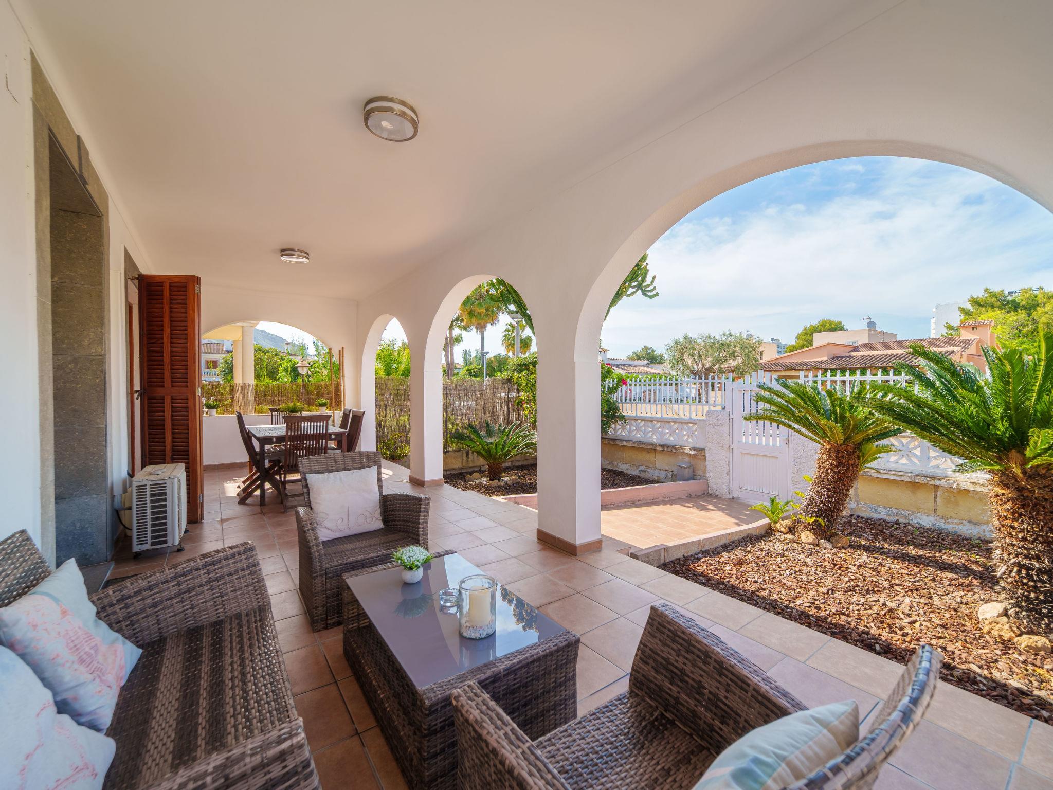Port d'Alcúdia: Child friendly, beautiful, cosy villa "Villa Rosa", renovated in 2017. In the resort, in a quiet, sunny position, excellent location: right in the centre but still quiet, 1 km from the edge of the forest, 250 m from the sea, 400 m from the lake, from the beach, 100 m from the canal, located by a road. Private: well-kept garden with wildlife garden and flowers. Patio (150 m2), pergola (25 m2), garden furniture, barbecue. In the house: lounge with TV, internet access, WiFi, air conditioning, washing machine, tumble dryer. Parking at the house. Shop, grocery, supermarket 200 m, restaurant, bar, bakery 300 m, café 150 m, bicycle rental 150 m, pub garden 150 m, 15 minute walk to the centre, bus stop 200 m, sandy beach 250 m pebble beach 4.5 km, shingle beach 4.5 km, rocky beach 4.5 km, 200 m, diving center 1 km, outdoor swimming pool 1 km, indoor swimming pool 1 km, swimming bay 4.5 km, public bathing area 4.5 km, 500 m. Sports harbour 1 km, marina 1 km, golf course (18 hole) 4.5 km, surf school 1 km, sailing school 1 km, tennis 2 km, minigolf 2 km, riding stable 1.2 km, sports centre 1 km, cycle lane 2 km, children's playground 200 m. Well-known lakes can easily be reached: lago menor 1.5 km, lago mayor 1.5 km. Please note: suitable for families, suitable for seniors. Object suitable for 6 adults groups of teenagers on request only. Loading and unloading of baggage is possible at the holiday house. Nightclub/disco 2 km from the property. Airfield 45 km from the property.