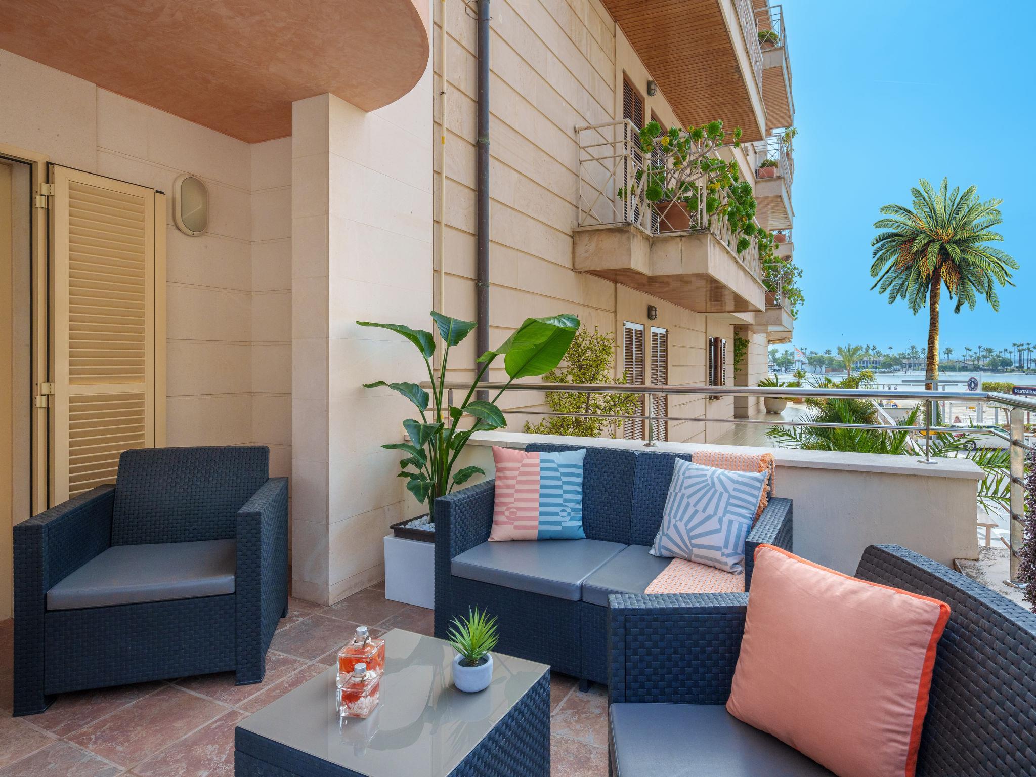Port d'Alcúdia: Very large, beautiful, comfortable apartment block "Maritimo". In the centre of Port d'Alcúdia, in a sunny position, in the heart of the city, 3 km from the edge of the forest, 50 m from the sea, from the beach, road to cross. Private: terrace, garden furniture. In the house: internet access, WiFi, lift, air conditioning, washing machine. Public car park, public parking on the road. Shop 10 m, supermarket 70 m, restaurant 10 m, bar 5 m, bakery 150 m, pedestrian zone 50 m, bicycle rental 200 m, pub garden 5 m, 1 minute walk to the centre, bus stop 250 m, sandy beach 50 m, rocky beach 2 km. Sports harbour 150 m, marina, golf course (18 hole) 4 km. Please note: suitable for families, suitable for seniors. Object suitable for 6 adults. The owner does not accept any youth groups. Neighbourhood highly sensitive to noise. Quietness and good behaviour expected.