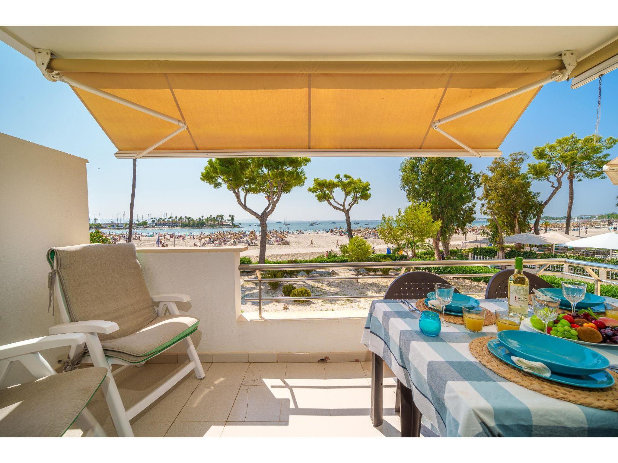 Puerto de Alcúdia 2 km from Alcúdia: Modern, comfortable apartment block "Xisca". In the resort 200 m from the centre of Puerto de Alcúdia, excellent location: right in the centre but still quiet, 2 km from the edge of the forest, 10 m from the sea, 10 m from the beach, south facing position. In the house: lift. Shop 15 m, grocery 10 m, supermarket 100 m, restaurant 5 m, bar 20 m, bakery 300 m, café 15 m, pedestrian zone 10 m, bicycle rental 250 m, pub garden 20 m, bus stop 100 m, sandy beach "Playa de Alcúdia" 10 m, diving center 4 km. Sports harbour 800 m, marina, golf course (18 hole) 4 km, surf school 1 km, sailing school 1 km, tennis 4 km, riding stable 4 km, sports centre 1 km, walking paths from the house 2 km, cycle lane 1 km. Nearby attractions: Ciudad Romana de Pollentia 2 km, Ermita de la Victoria 6 km, Alcúdia (Old Town) 2 km. Well-known lakes can easily be reached: S'Albufera d'Alcudia 5 km. Hiking paths: Sa Talaia d'Alcúdia 6 km, Puig de Sant Martí 3 km. Please note: suitable for families, suitable for seniors. Object suitable for 4 adults. The owner does not accept any groups. The owner does not accept any youth groups. Airfield 65 km from the property. Neighbourhood highly sensitive to noise. Quietness and good behaviour expected.