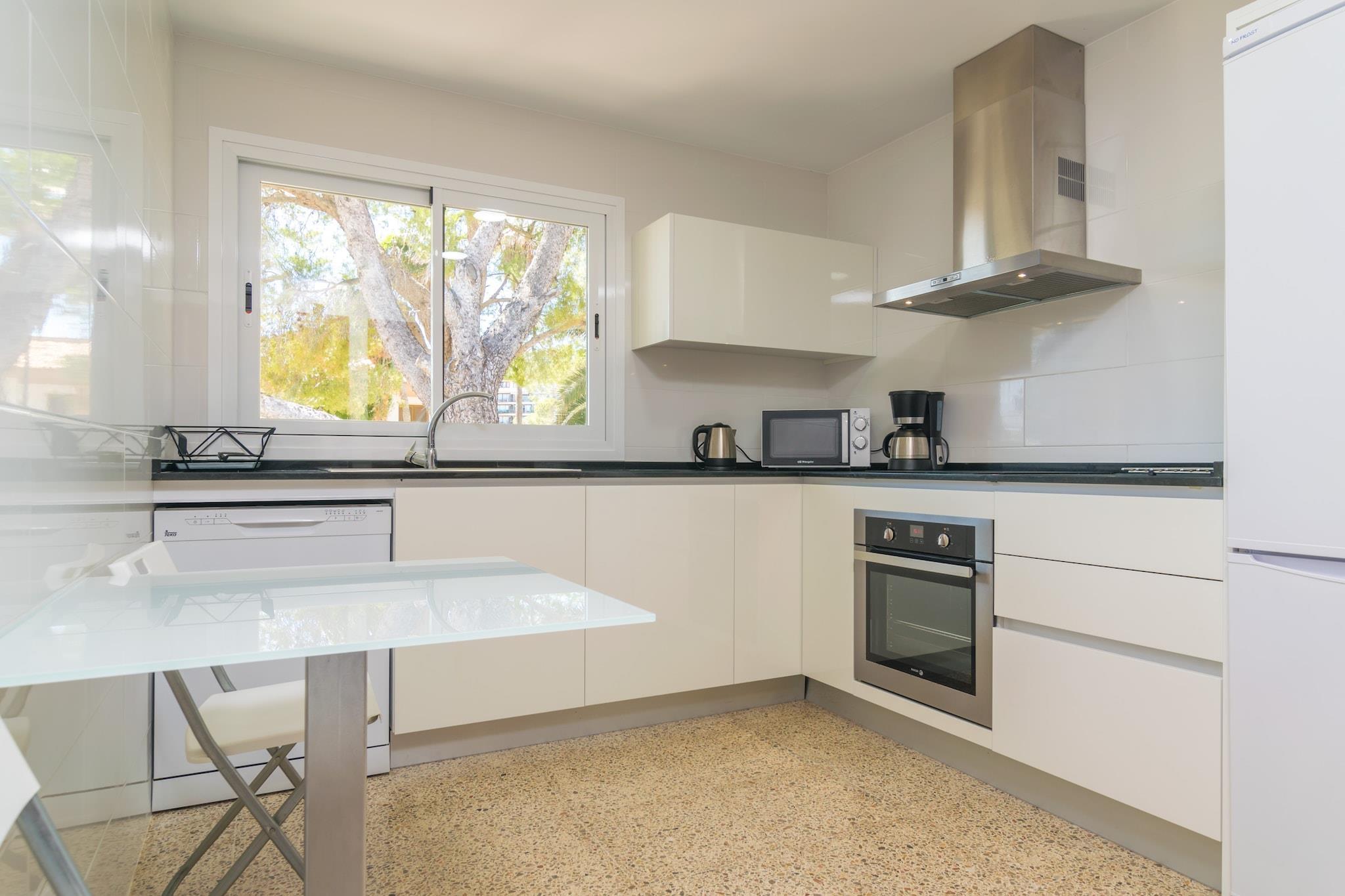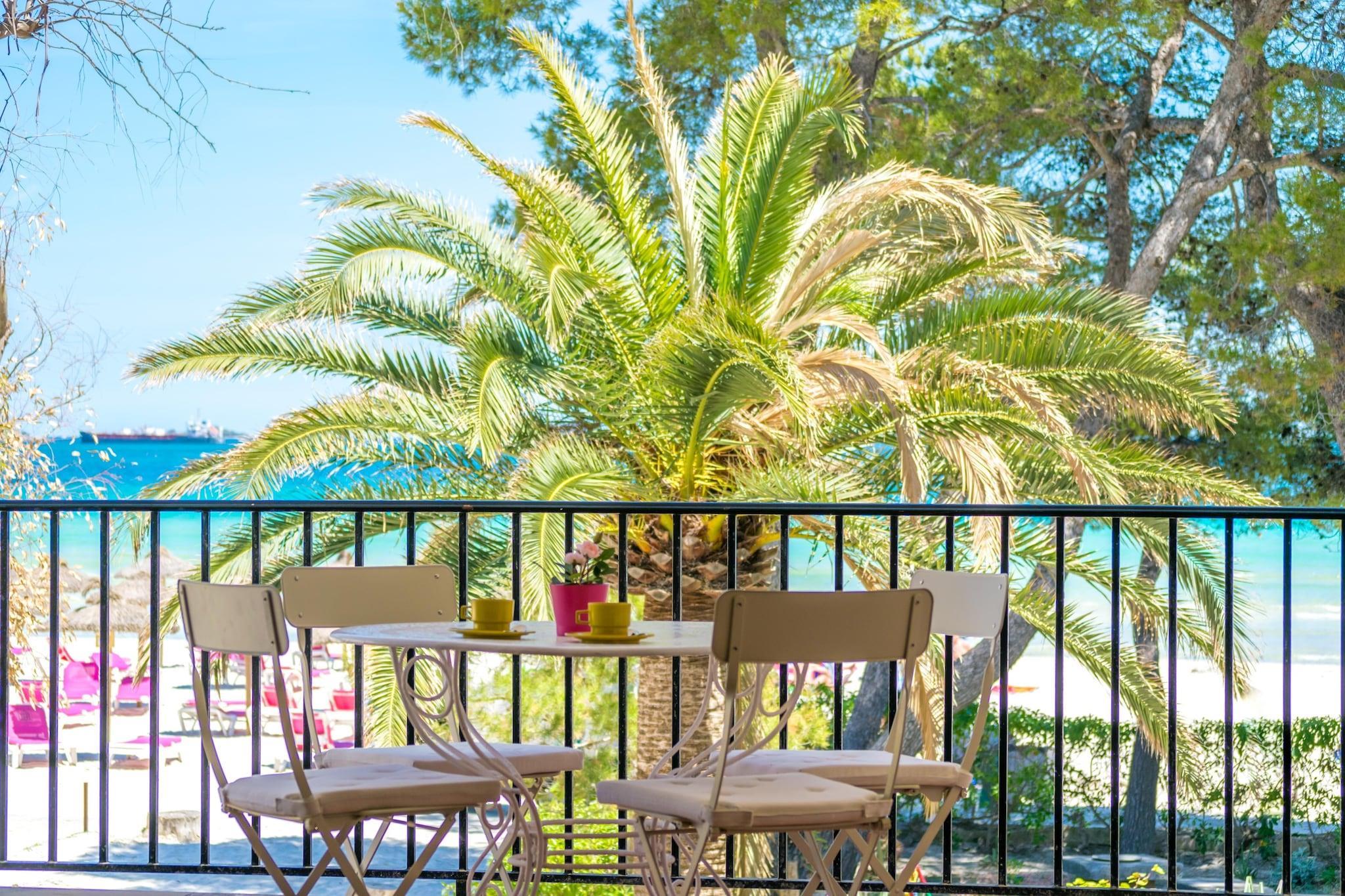 Terrasse med havudsigt Træd ind på den rummelige terrasse og nyd uforstyrret udsigt over havet, mens du nyder morgenmad, frokost eller et aftensmåltid. Forestil dig lange, afslappede middage med et glas vin, mens den kølige havbrise strømmer forbi. Blot få skridt fra den fine sandstrand kan du tilbringe dine dage med at svømme, solbade eller slentre langs den livlige, oplyste promenade med små både. Komfortable opholdsrum Lejligheden ligger på første sal i en bygning uden elevator og har en lys stue/spisestue med satellit-tv og direkte udgang til terrassen. Køkkenet er fuldt udstyret med en keramisk kogeplade, ovn og alle nødvendige redskaber, mens en vaskemaskine, strygejern og strygebræt sikrer bekvemmelighed. Tre soveværelser, hver med to enkeltsenge, garderobeskabe, ventilatorer og radiatorer, kan rumme op til seks gæster. En barneseng og højstol er tilgængelige efter anmodning. To uafhængige badeværelser med bruser tjener hele lejligheden komfortabelt. Levende kystnære beliggenhed Puerto de Alcúdia tilbyder en engagerende blanding af strandliv, gastronomi og lokal kultur. Nyd cocktails på sandet, traditionel mallorcansk paella og shopping efter tøj, kunsthåndværk og souvenirs. Udforsk nærliggende strande og bugter såsom Cala de San Vicente, eller besøg den charmerende gamle bydel i Alcúdia, der er travl med sit marked på tirsdage og søndage. Med nem adgang til golf på Club de Golf Alcanada, færgeforbindelser og fremragende lokale faciliteter er alt hvad du behøver inden for rækkevidde.