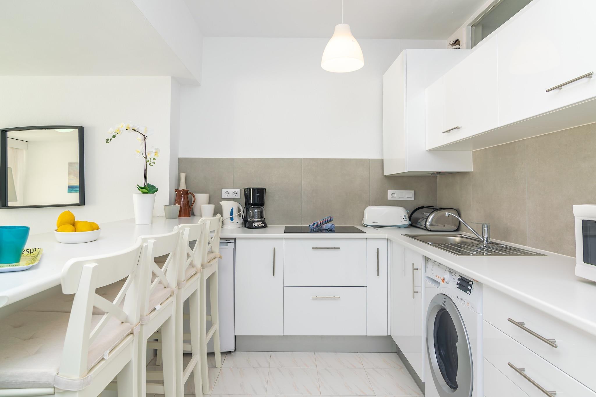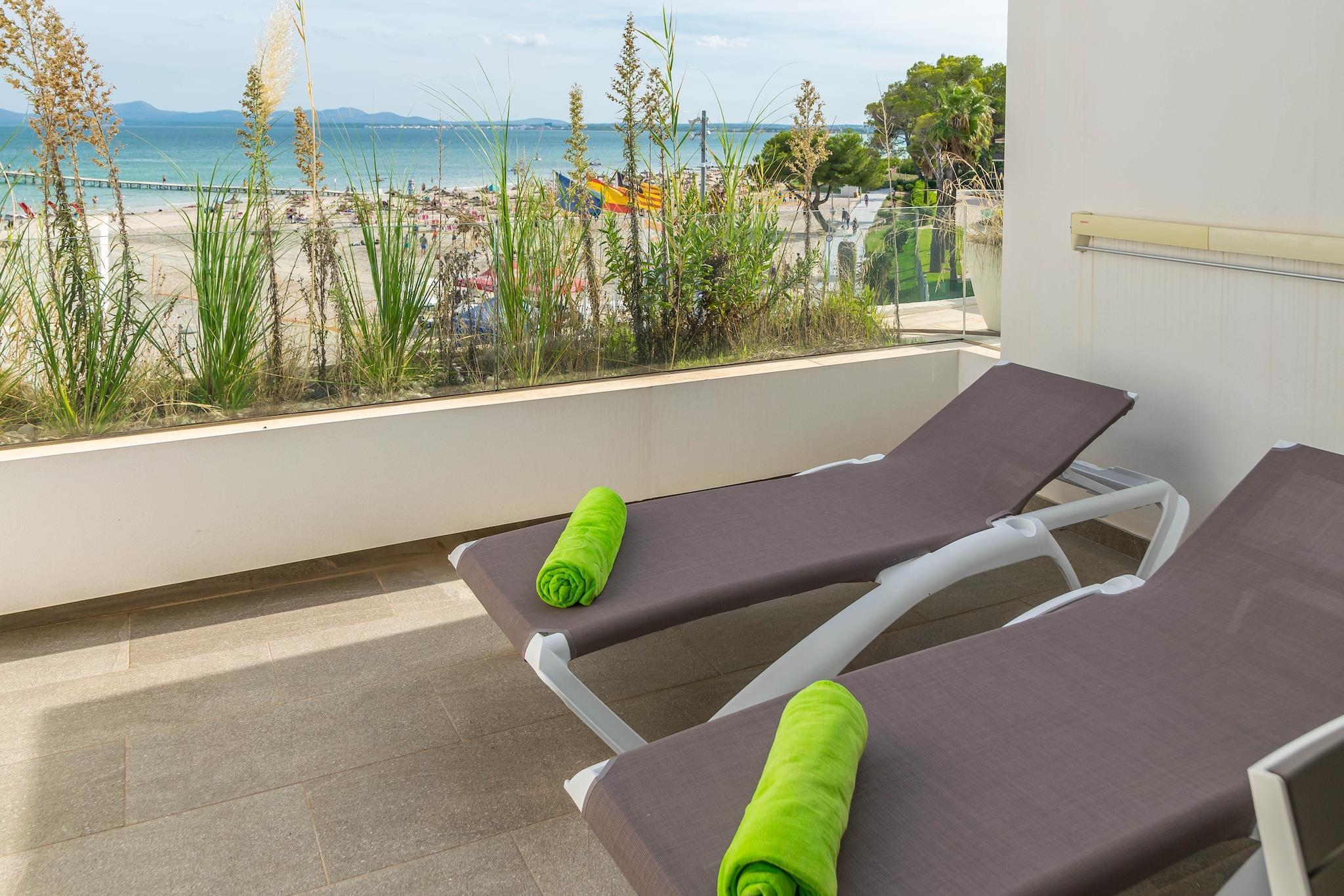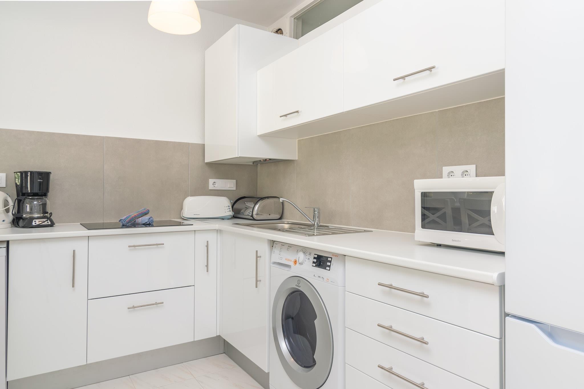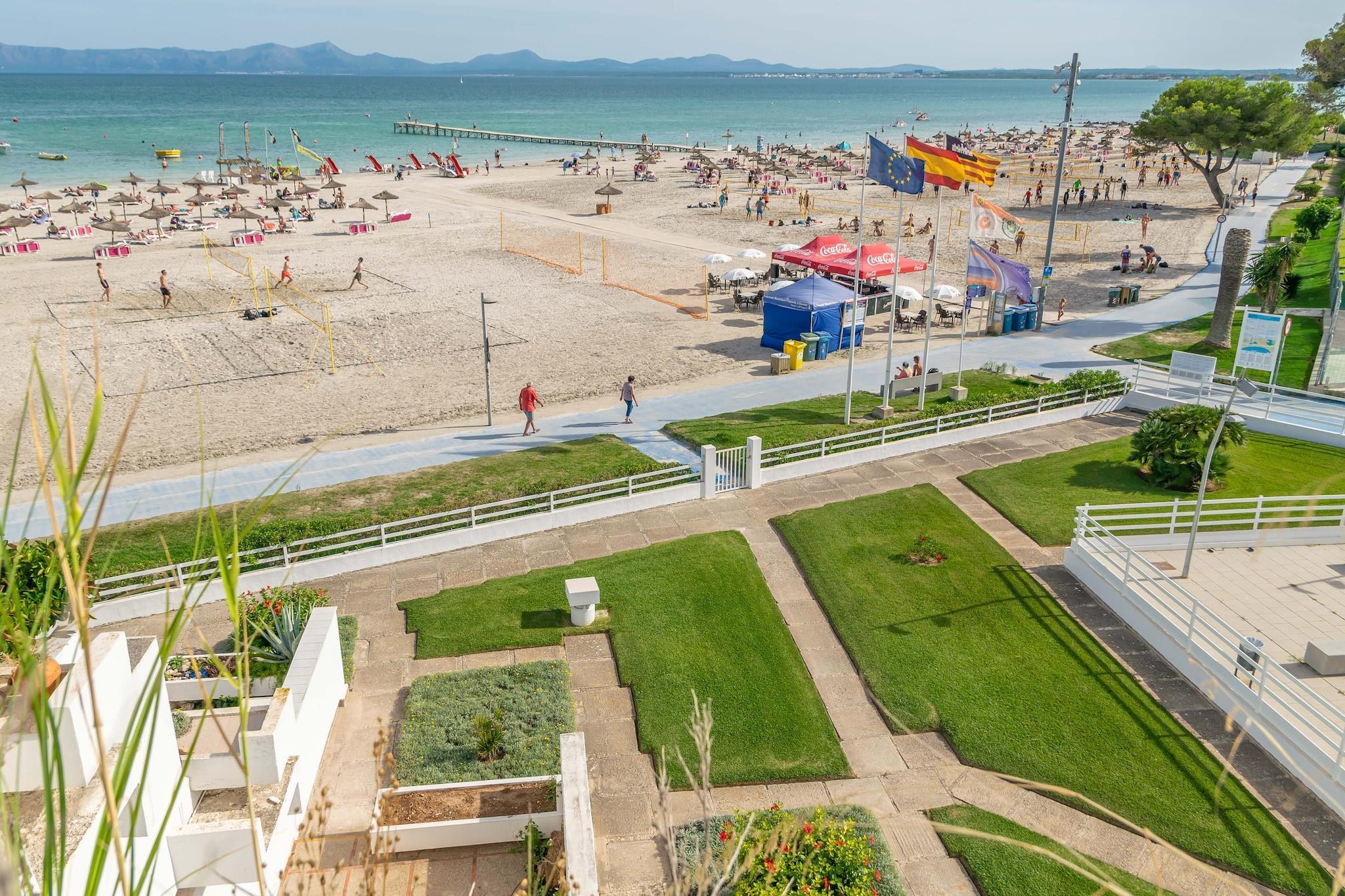 Fra terrassen i denne dejlige lejlighed kan du beundre det fantastiske Middelhav, mærke den blide brise og slappe af, mens du solbader på de komfortable liggestole. Terrassen har også en charmerende spiseplads med udendørs belysning, perfekt til at nyde middage, mens du ser solnedgangen over havet. Det er et ideelt sted at slappe af og nyde den fredfyldte kyststemning når som helst på dagen. Indvendigt er lejligheden nyrenoveret og stilfuldt indrettet med moderne bekvemmeligheder, herunder sovesofa og tv. Køkkenet har udsigt over den klimatiserede stue, hvor du kan nyde en morgenkaffe, mens du nyder den smukke udsigt over bugten. Køkkenet er fuldt udstyret med ovn, keramisk kogeplade og stort køleskab, fryser, plus der er en vaskemaskine for nemheds skyld. To soveværelser på bagsiden har udsigt over haven - det ene med en dobbeltseng og det andet med køjesenge - begge med AC. Badeværelset er rummeligt og har badekar og bruser. Beliggende kun få skridt fra Alcudias lange sandstrand, er beliggenheden perfekt til sol- og havferier. Nyd svømning, vandsport, gåture på stranden eller spis middag på strandbarer. Området tilbyder alle tjenester for et selvstændigt ophold, med charmerende nærliggende byer som den gamle bydel i Alcudia, Port de Pollença og Can Picafort, der venter på at blive udforsket. Denne lejlighed kombinerer komfort og beliggenhed for en mindeværdig middelhavsferie.
