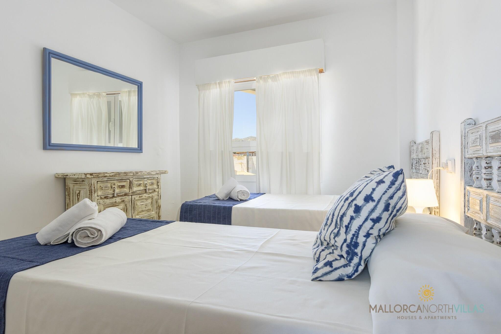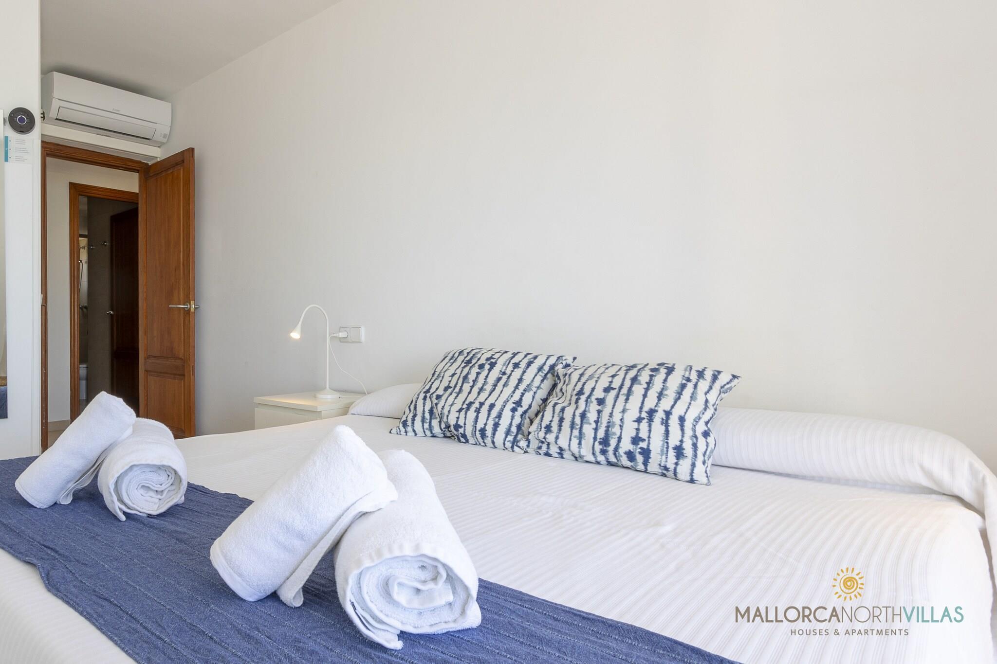 The lejlighed i Port de Pollença har 2 soveværelse(r) og kapacitet til 4 person(er). Bolig på 69 m² hjemlig og is very luminous, ligger i første linje til strand, med udsigt til stranden og lystbådehavnen. Er beliggende 0 m fra floden, 1 m fra stranden "Playa de Puerto de Pollensa", 1 m fra byen "Puerto de Pollensa", 1 m fra supermarkedet "Supermercado Vora Mar", 200 m from the restaurant "Restaurante Bar Coral", 250 m from the restaurant "Na Ruixa", 1 km fra busstationen "Estación Bus Puerto de Pollensa", 8 km fra naturparken "Reserva Natural de s'Albufereta", 10 km fra stenstranden "Cala San Vicente", 12 km fra golfbanen "Golf Pollensa", 14 km fra vandland "Hidropark Alcúdia", 24 km fra togstationen "Tren Sa Pobla", 57 km fra metroen "Metro Son Castelló", 67 km fra lufthavnen "Aeropuerto Son Sant joan" og er beliggende i et rolig område og tæt på butikker og restauranter. Tilbyder elevator, vaskemaskine, strygejern, pengeskab, internet (wifi), hårtørrer, altan, børneområde, tennisbane, squashbane, padelbane, fitnesscenter, spa, utildækket parkering, 2 fans, 1 TV. The køkken, på keramiske kogeplader, med service og køleskab, mikroovn, ovn, fryser, opvaskemaskine, tallerkener/bestik, køkkenredskaber, kaffemaskine, brødrister, kedel og saftpresser.