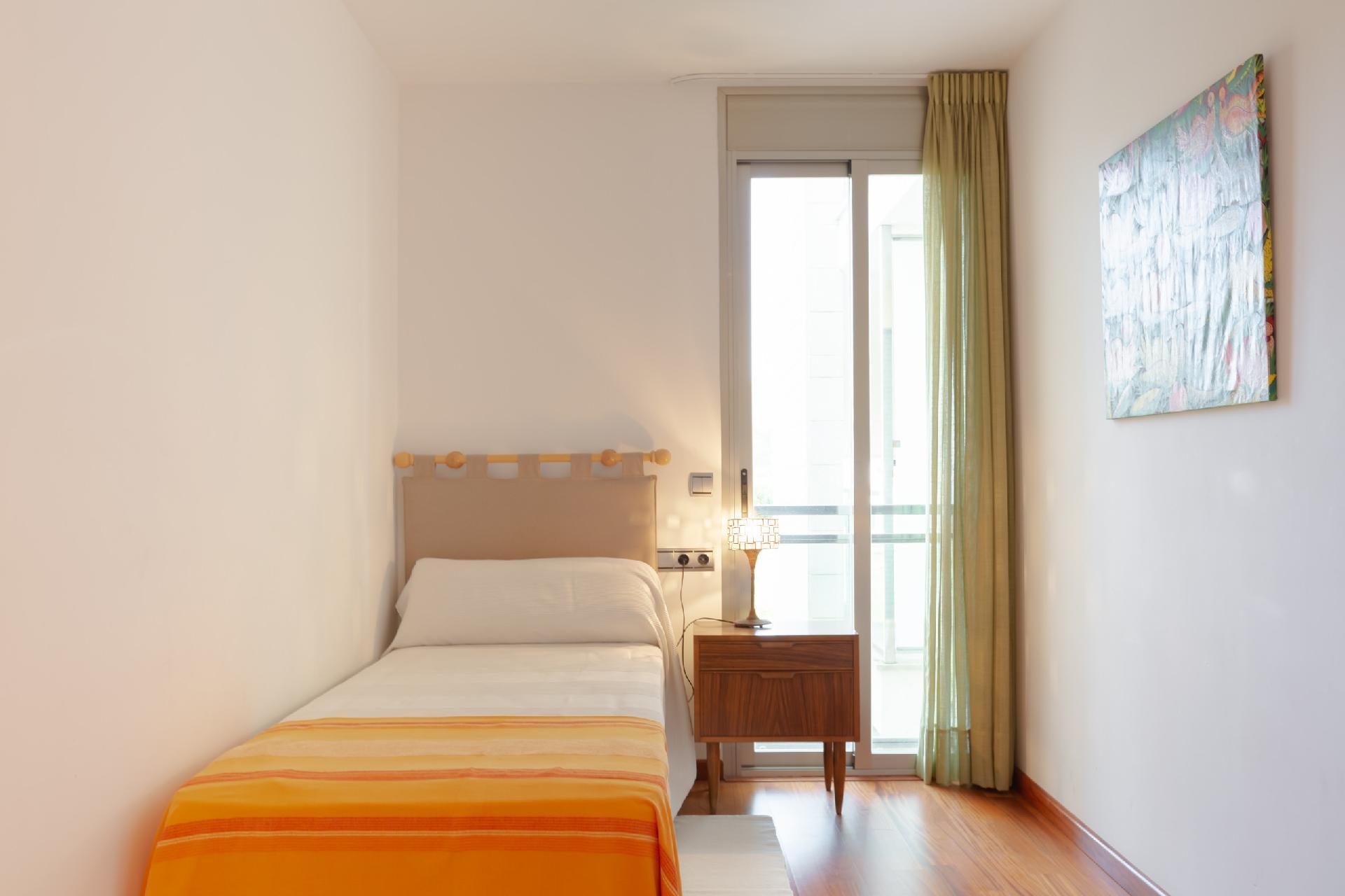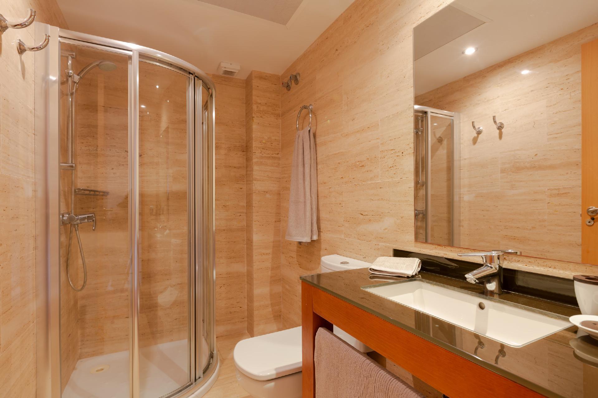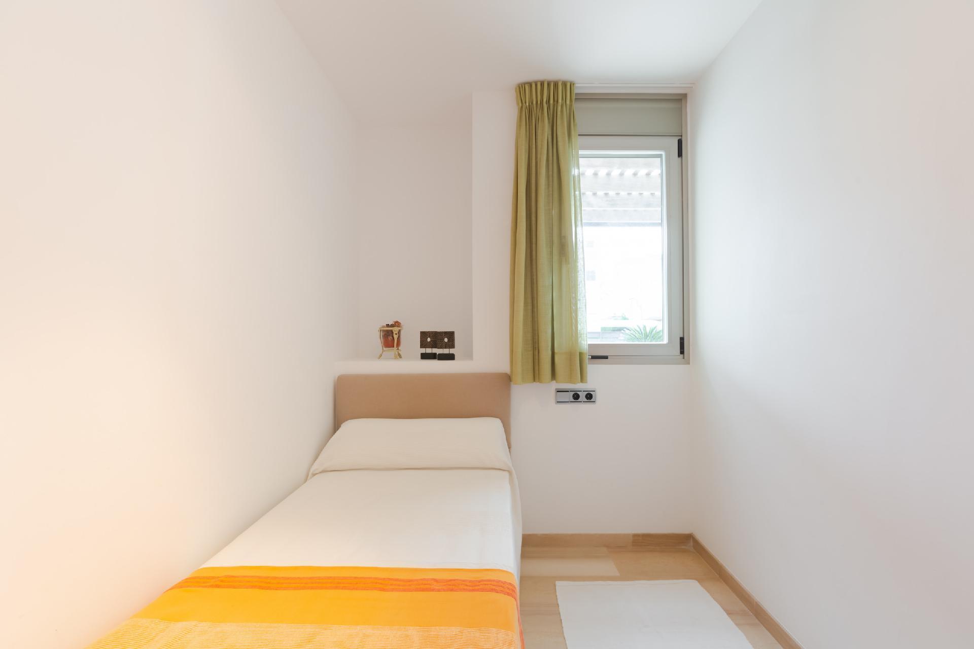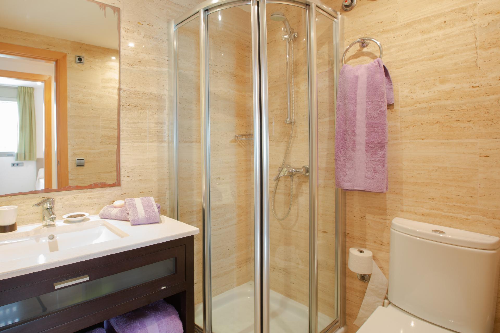 This two-storey apartment near the beach in Puerto Pollensa has 110sqm and can sleep up to 6 people. One of the rooms is a double room with an en-suite bathroom, and there is also one twin room with two individual beds. And there is a third room with another double bed. The second bathroom is equipped with a shower.