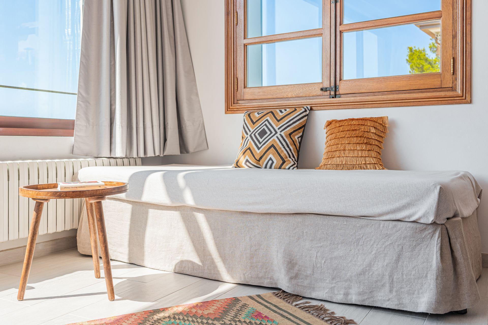 CASA DEL PUERTO is located in the harbour of Port de Sóller, which is characterised by its historic old town and fishing port. The house is situated on a hill directly opposite the harbour entrance with a fantastic view of the harbour and the open sea. The promenade and the beach of Port de Sóller with its romantic ambience, embedded in the impressive mountain landscape with many shops, cosy restaurants and street cafés and the nostalgic tram to Sóller can be reached on foot in just 6 minutes. The house is located in a quiet residential area / cul-de-sac just 400 metres from the beach promenade. Excellent restaurants are within walking distance (6 min). The property borders directly on a large, undeveloped nature reserve with pine forests and olive groves. CASA DEL PUERTO has just been completely renovated for letting. Bookings can be made immediately. Rental licence ETV/4940.
