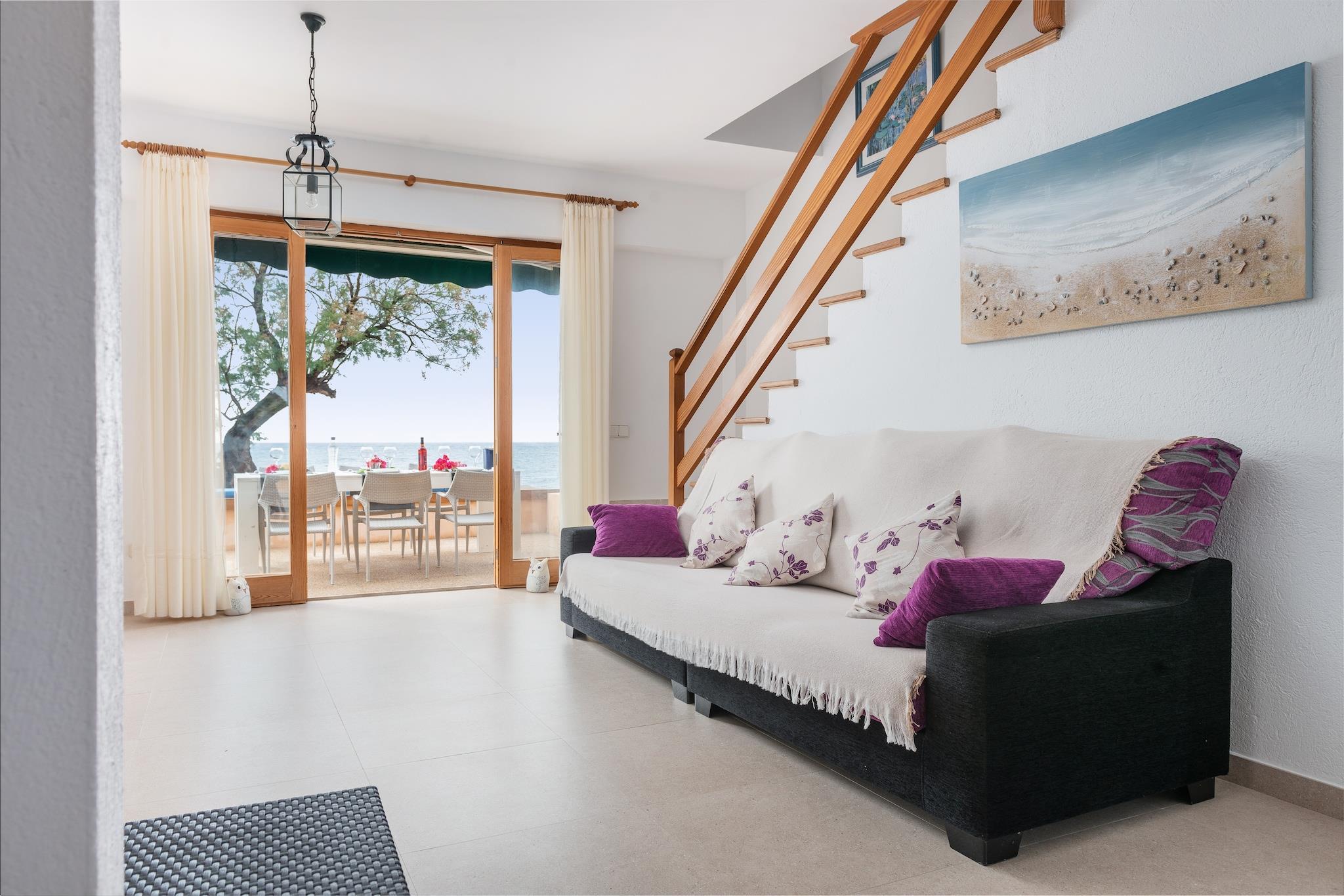 Start og afslut din dag på terrassen ved stranden, og se bølgerne rulle ind ved solopgang og solnedgang. En anden, overdækket terrasse ved indgangen tilbyder et roligt sted at nyde brisen og slappe af udendørs. Privat parkering til 1 bil er inkluderet. Indvendigt kombinerer dette hyggelige to-etagers hjem enkelhed og komfort. Stueetagen har en stue med Smart TV (tyske, engelske og franske kanaler) og et veludstyret køkken-alrum med keramisk kogeplade. Der er også et praktisk udendørs badeværelse. Ovenpå finder du 3 soveværelser med 2 enkeltsenge kølet af en AC-enhed på gangen og et andet komplet badeværelse. En vaskemaskine, strygejern, barneseng og høj stol er til rådighed. Beliggende i det fredelige Ses Barreres, mellem Cala Bona og Costa dels Pins, byder huset på uovertruffen havudsigt og direkte adgang til en stille strand. Alle væsentlige tjenester er kun få minutter væk, og Son Servera Golfbane ligger kun 1,7 km fra din dør. Kæledyr og arrangementer er ikke tilladt. Turistskat betales kontant ved ankomst.