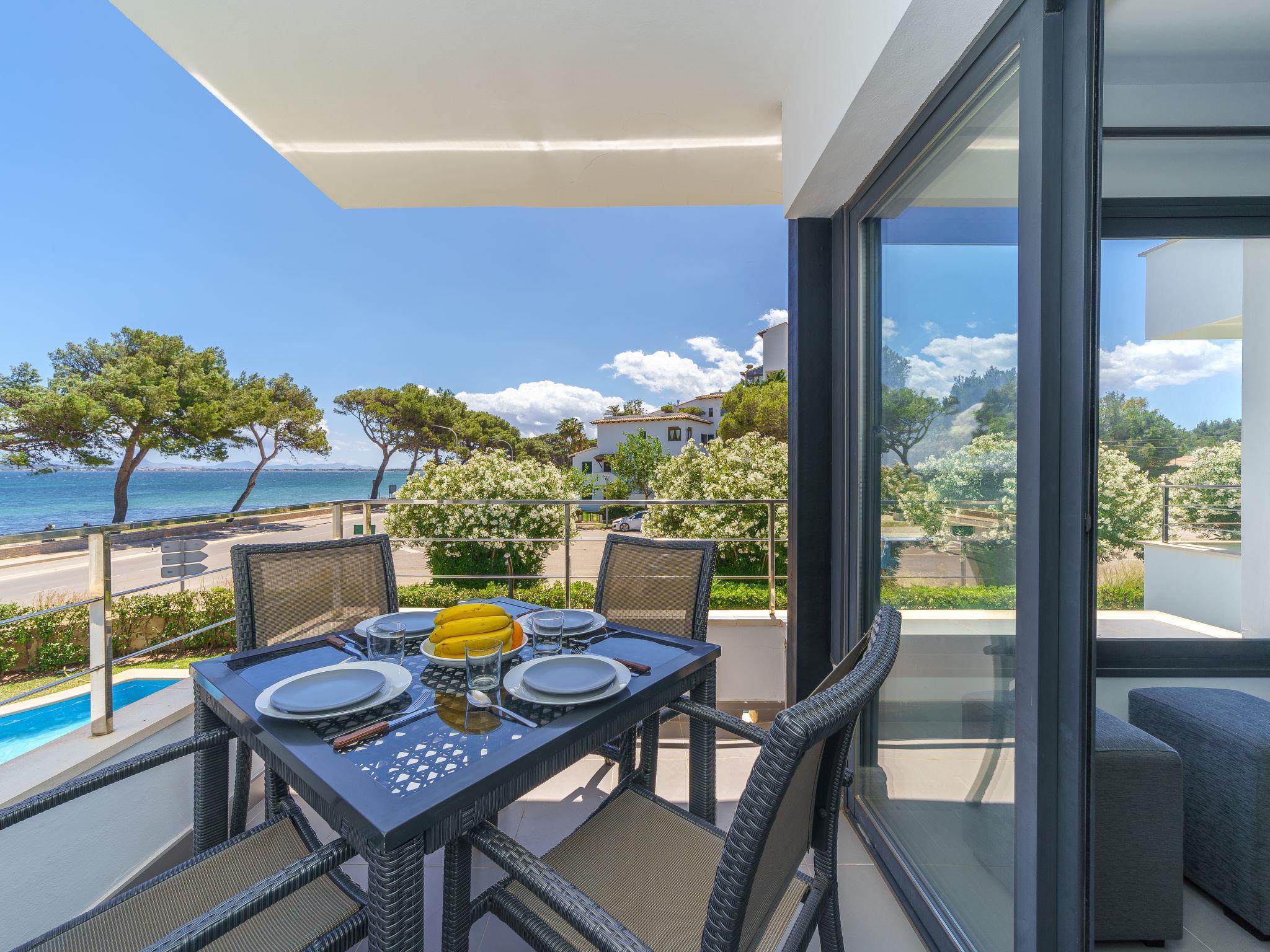 Modern, beautiful, comfortable apartment block "Oratge Beach Views". In the resort 900 m from the centre of Port de Pollença, in a quiet, sunny position, excellent location: right in the centre but still quiet, 2.5 km from the edge of the forest, 10 m from the sea, from the beach, road to cross. For shared use: garden with lawn, swimming pool (8 x 4 m, depth 40 - 165 cm, seasonal availability: 01.Jan. - 31.Dec.). Outdoor shower. Private: terrace (6 m2). In the house: internet access, WiFi, air conditioning, washing machine. Public car park at 25 m, public parking on the road. Shop 1.2 km, grocery 500 m, supermarket, restaurant 50 m, bar 100 m, bakery 1.5 km, pedestrian zone 600 m, bicycle rental 900 m, pub garden 50 m, 10 minute walk to the centre, bus stop 500 m, sandy beach 10 m, shingle beach 50 m. Sports harbour 1.7 km, marina 1.7 km, golf course (18 hole) 9.8 km, tennis 2 km, walking paths from the house 1.5 km, cycle lane 1.5 km. Nearby attractions: Pollença Pueblo 6.7 km, Far de Formentor 23 km, Ciudad Romana de Alcúdia 7 km, Playa de Formentor 12 km, Cala Sant Vicenç 11.2 km, Mercado Local Miércoles 8-13h. Hiking paths: Cala Boquer, Atalaya de Alcúdia, Serra de Tramuntana. Please note: no lift. Object suitable for 2 adults. Airfield 66 km from the property. Neighbourhood highly sensitive to noise. Quietness and good behaviour expected.