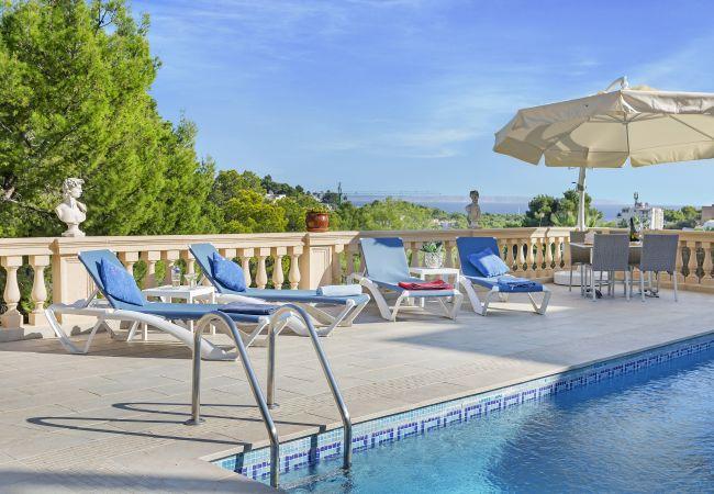 Villa Maria Portals Nous by Priority is a fantastic villa with sea views, located in the luxurious area of Portals Nous. You will have private use of the outdoor area (pool and terrace with views) and the ground floor of the property, with three bedrooms, two bathrooms, a kitchen and a living room. Its three spacious bedrooms and capacity for 6 people make it the ideal villa for a family or friends' holiday. Relax on the majestic terrace with views of the Mediterranean Sea and the beautiful Sierra de Tramuntana, next to its beautiful pool. If you want a day at the beach, the beautiful Portals Nous Beach is only 500 metres away. Tourist licence number: ETV60/12748.